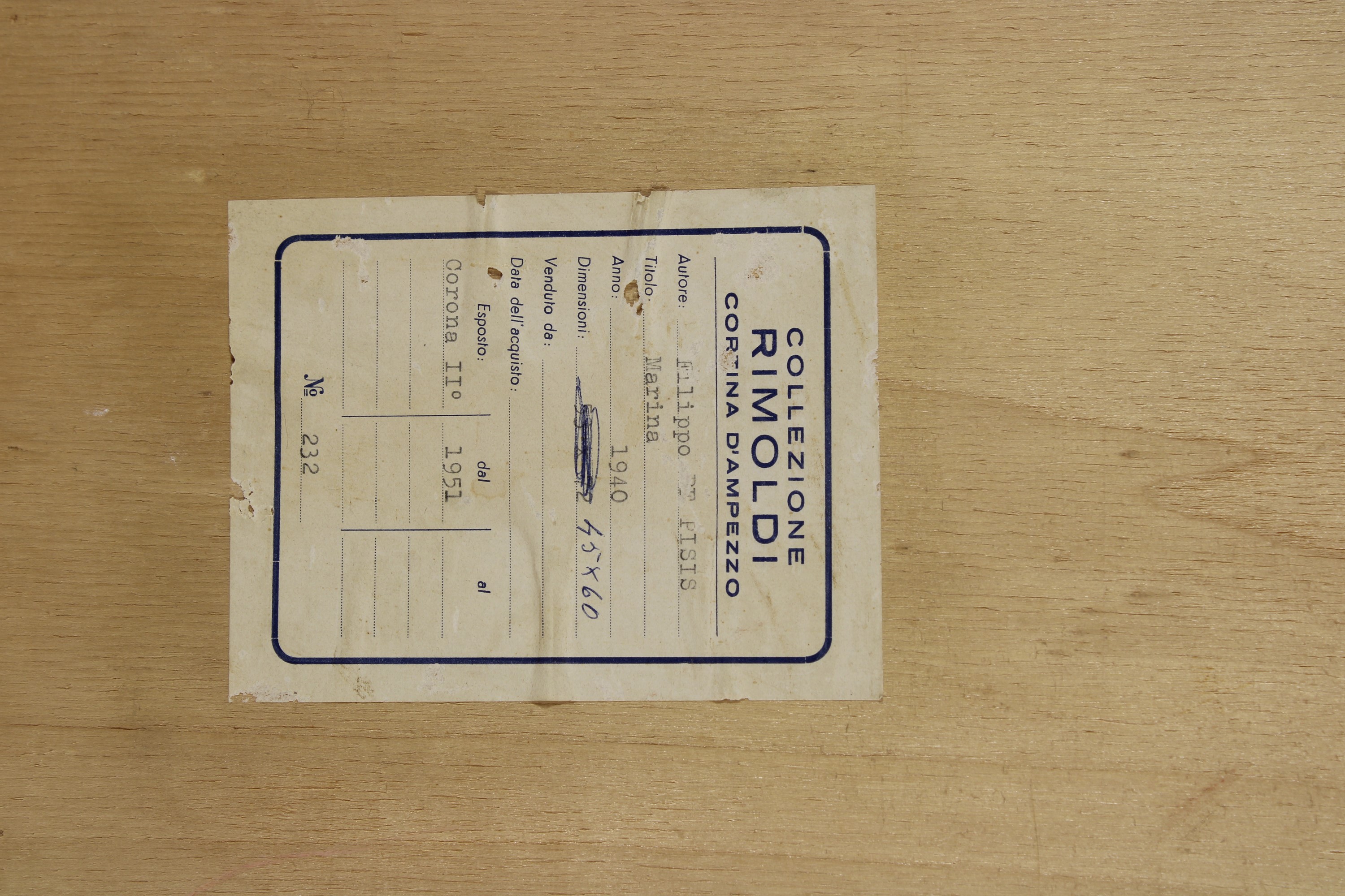 Provenienza: Mario Rimoldi, Cortina D'Ampezzo, Galleria d'Arte Al Sole, Feltre, collezione privata, Roma
