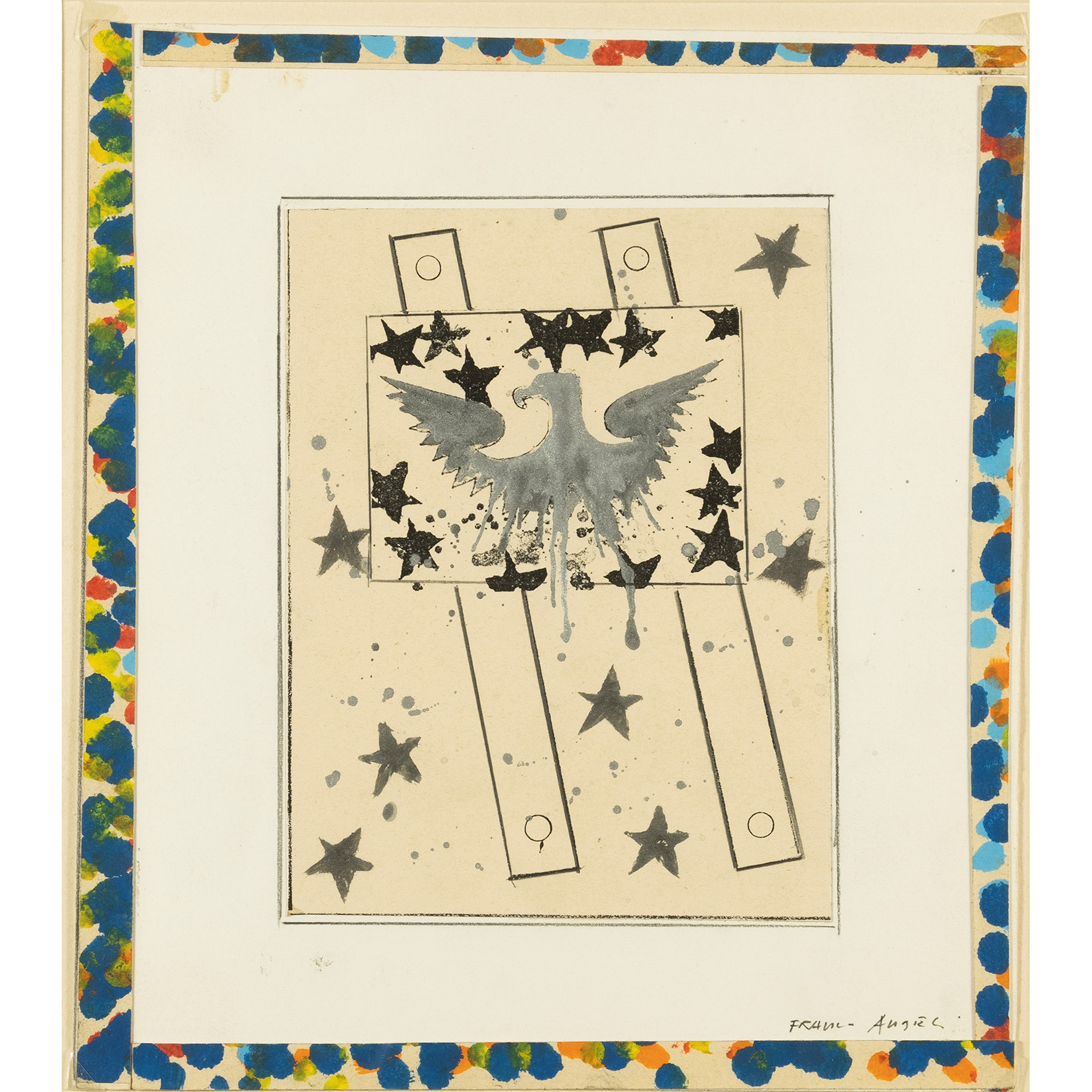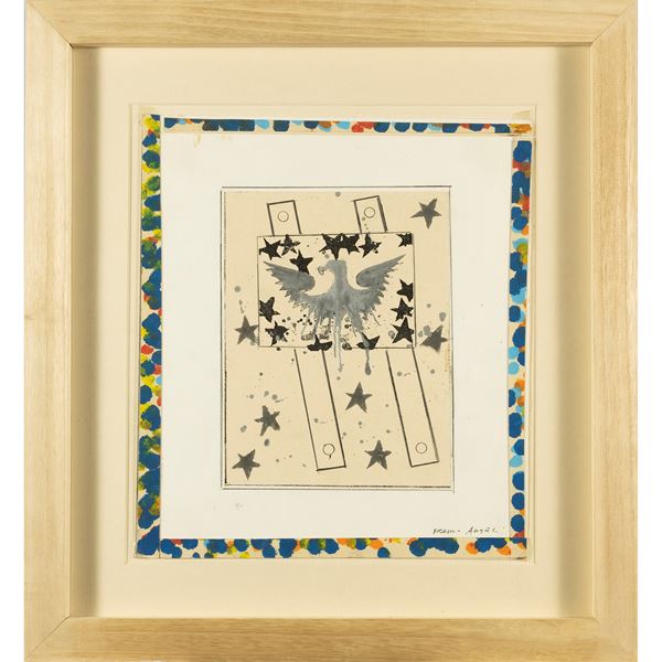 tecnica mista e collage su carta, firmato in basso a destra, entro cornice
