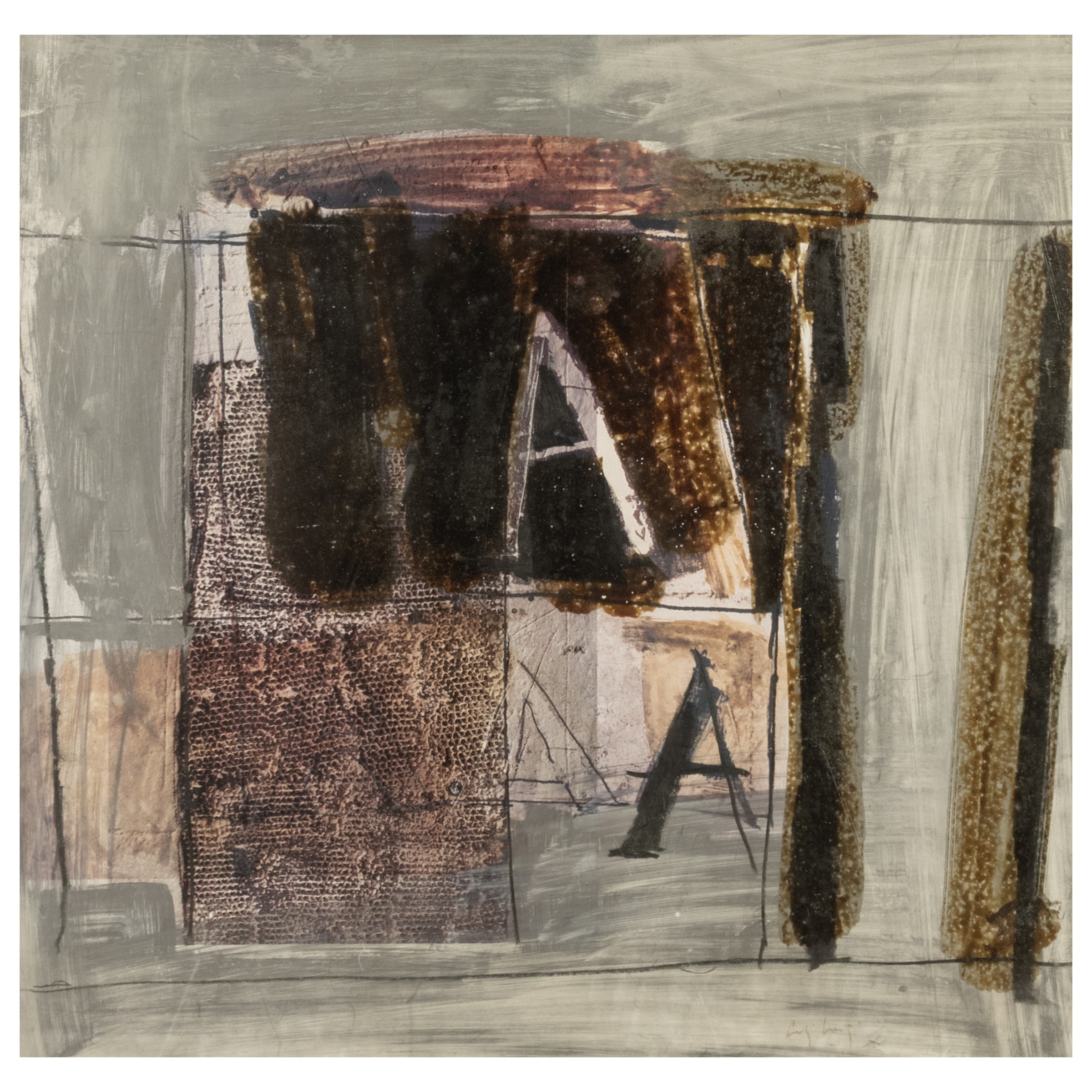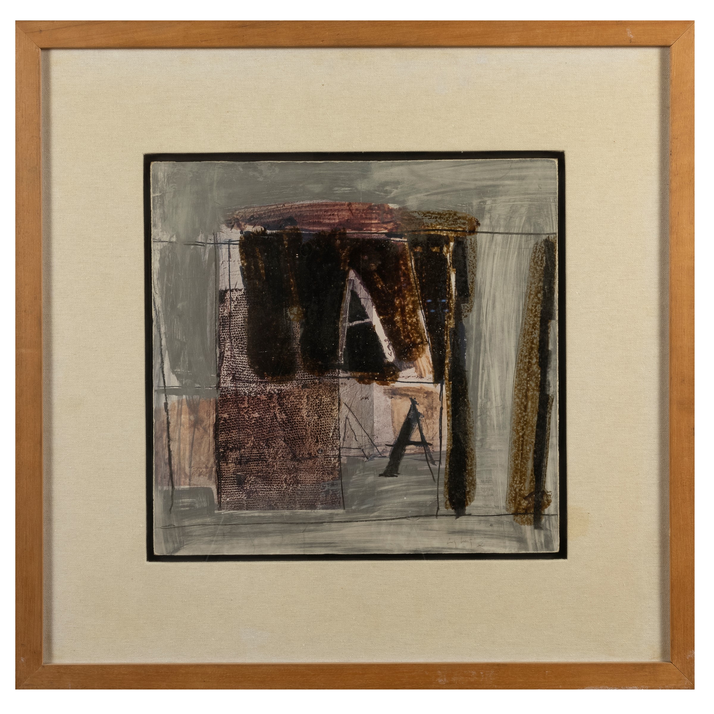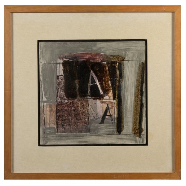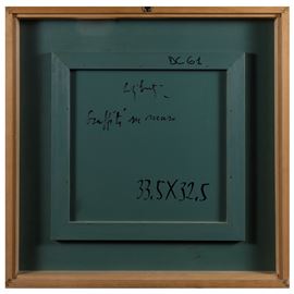 33,5x32,5 cm.tecnica mista su cartoncino applicato su tavola, firmata in basso a destra, firmata e titolata sul retro, entro cornice