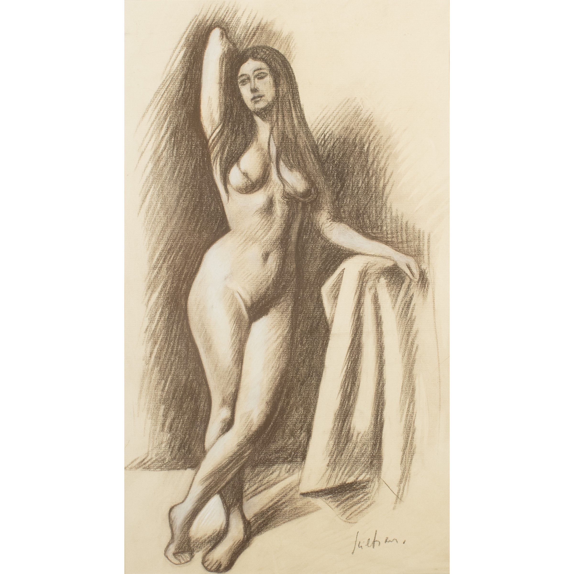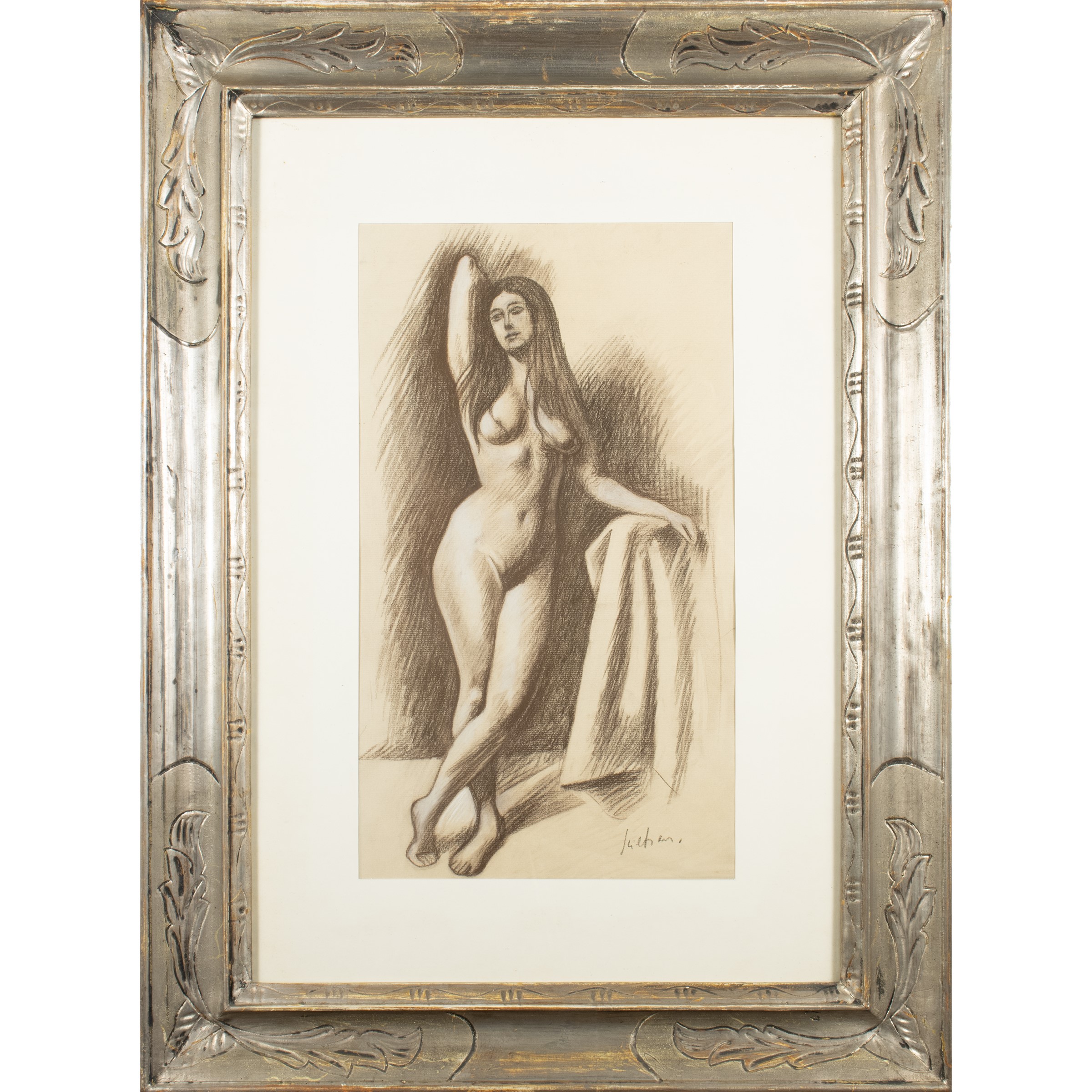 46x26 cm.carboncino e pastelli su carta, firmato in basso a destra, entro cornice