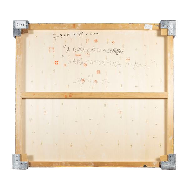 tecnica mista e bassorilievo su tavola, angoli in metallo, firmata, datata e titolata sul retro, timbri dell'Artista sul retro