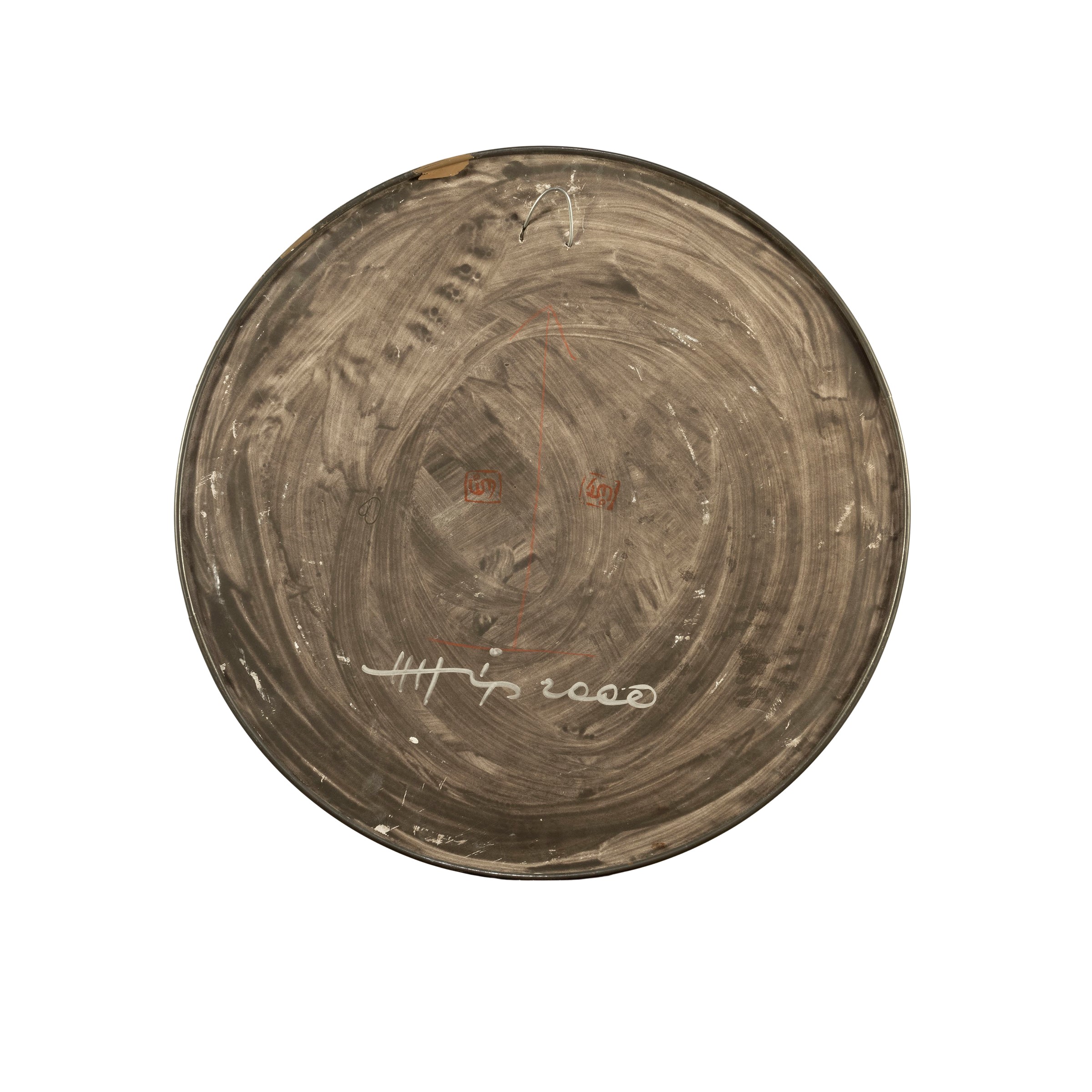 diametro 50,5 cm.bassorilievo in gesso, metallo e freccetta, firmato e datato sul retro, timbri dell'artista sul retro