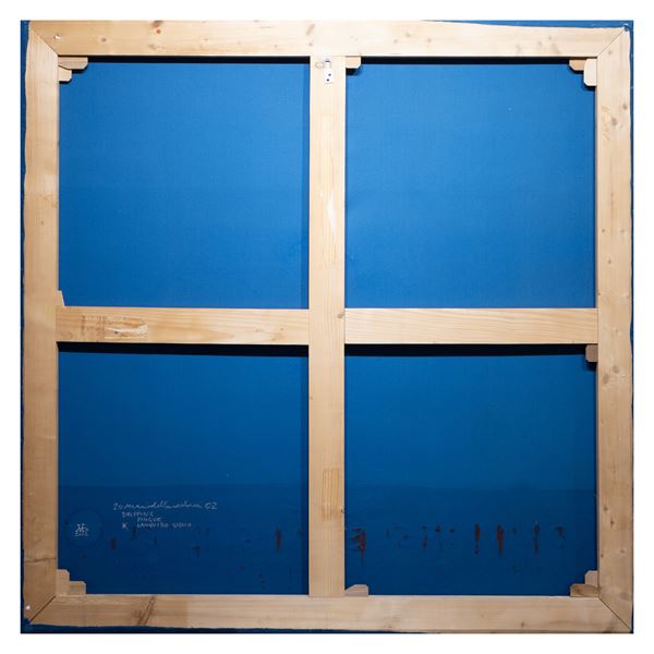 145x145 cm.olio su panno, firmato, titolato e datato sul retro