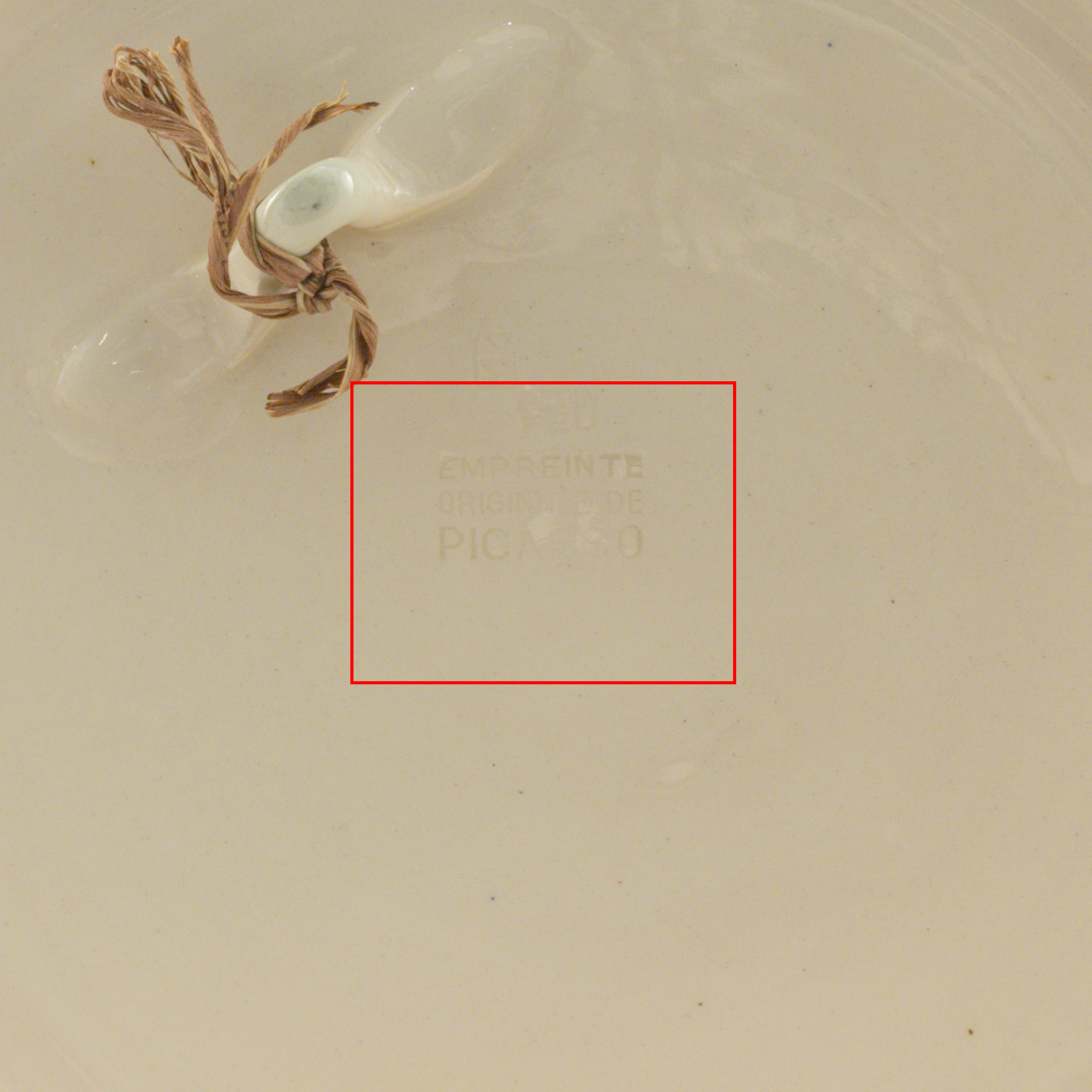 terracotta bianca, incisione in paraffina ossidata, smalto bianco, bruno e verde, datato sul fronte: XXII II 56, timbro Madoura plein feu Edition Picasso sul retro.
