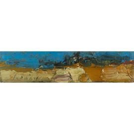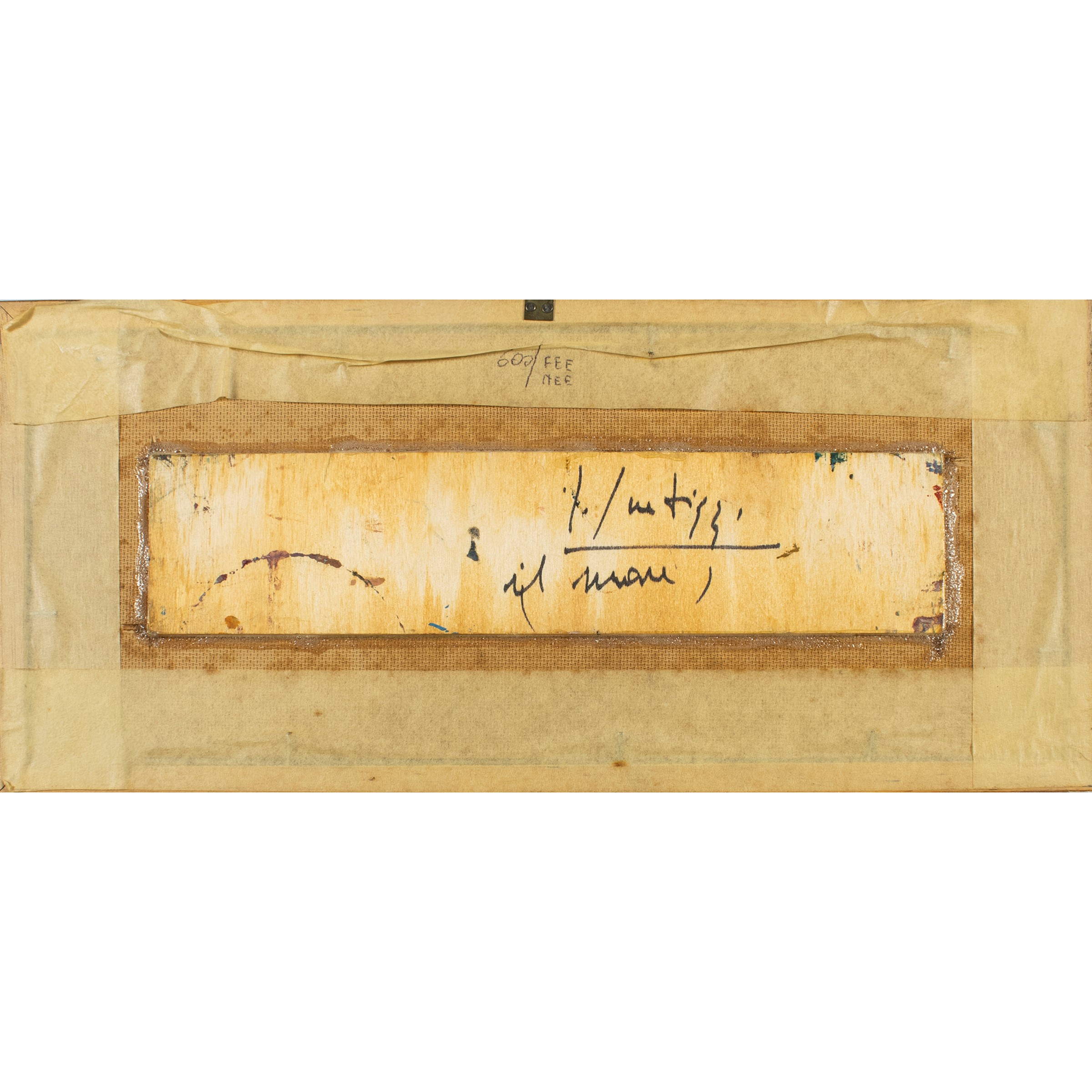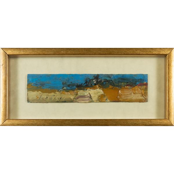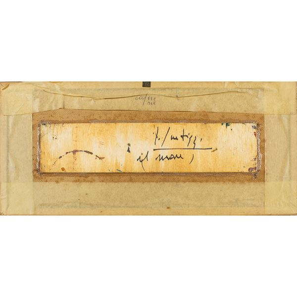 7,5x32,5 cm.olio su tavoletta, firmato in basso a sinistra, firmato e titolato sul retro, entro cornice