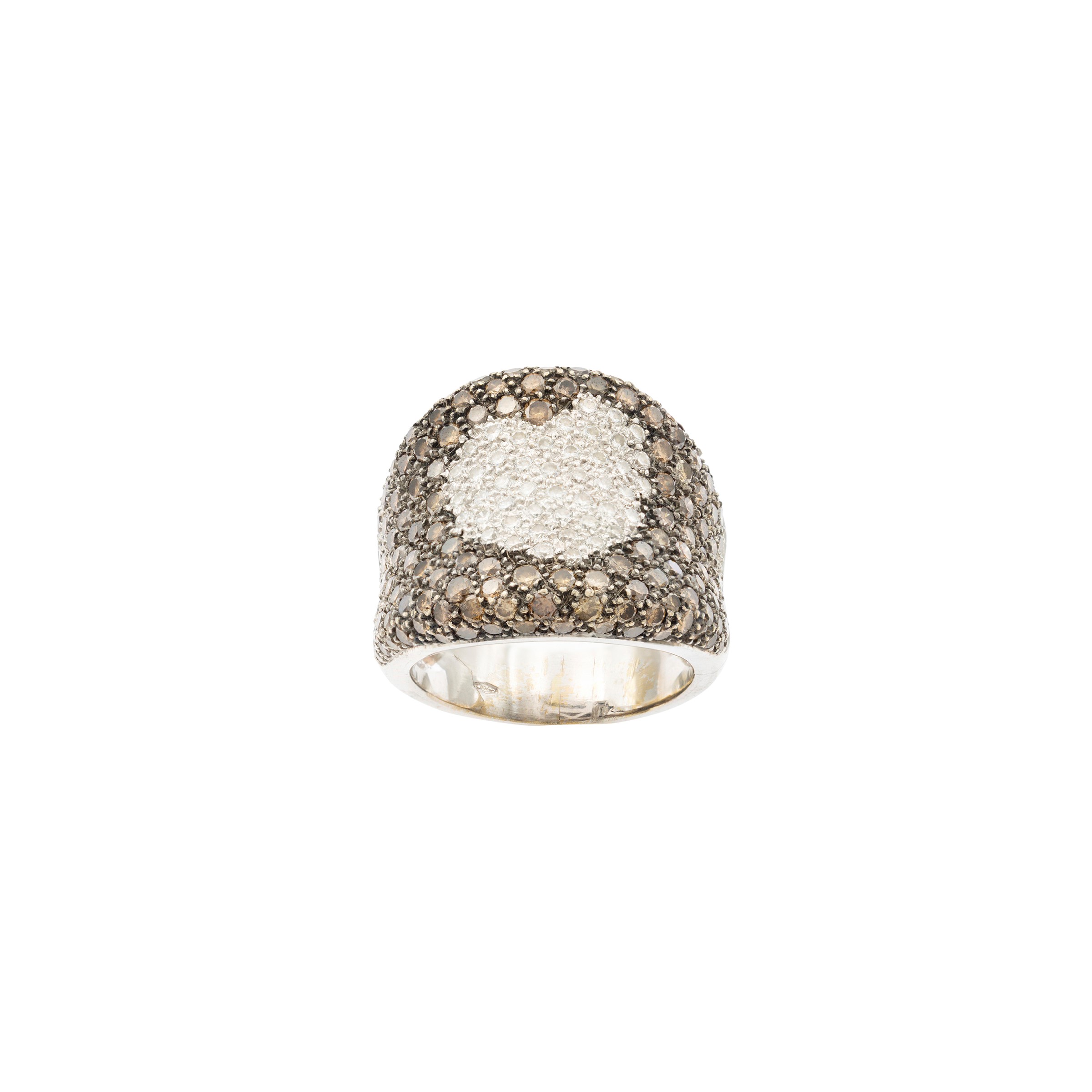 Anello a cuore in oro bianco 18kt diamanti e diamanti brown