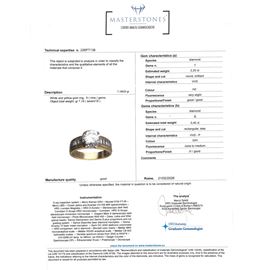 peso 7 gr.circa, colore H/I - purezza VVS, ai lati diamanti taglio baguettes ct 0,40 circa colore G/H - purezza VVS/P, misura 15, completo di certificato gemmologico