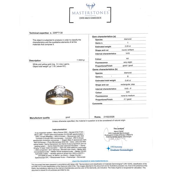 Anello in oro a due colori 18kt con diamante naturale ct 2,20