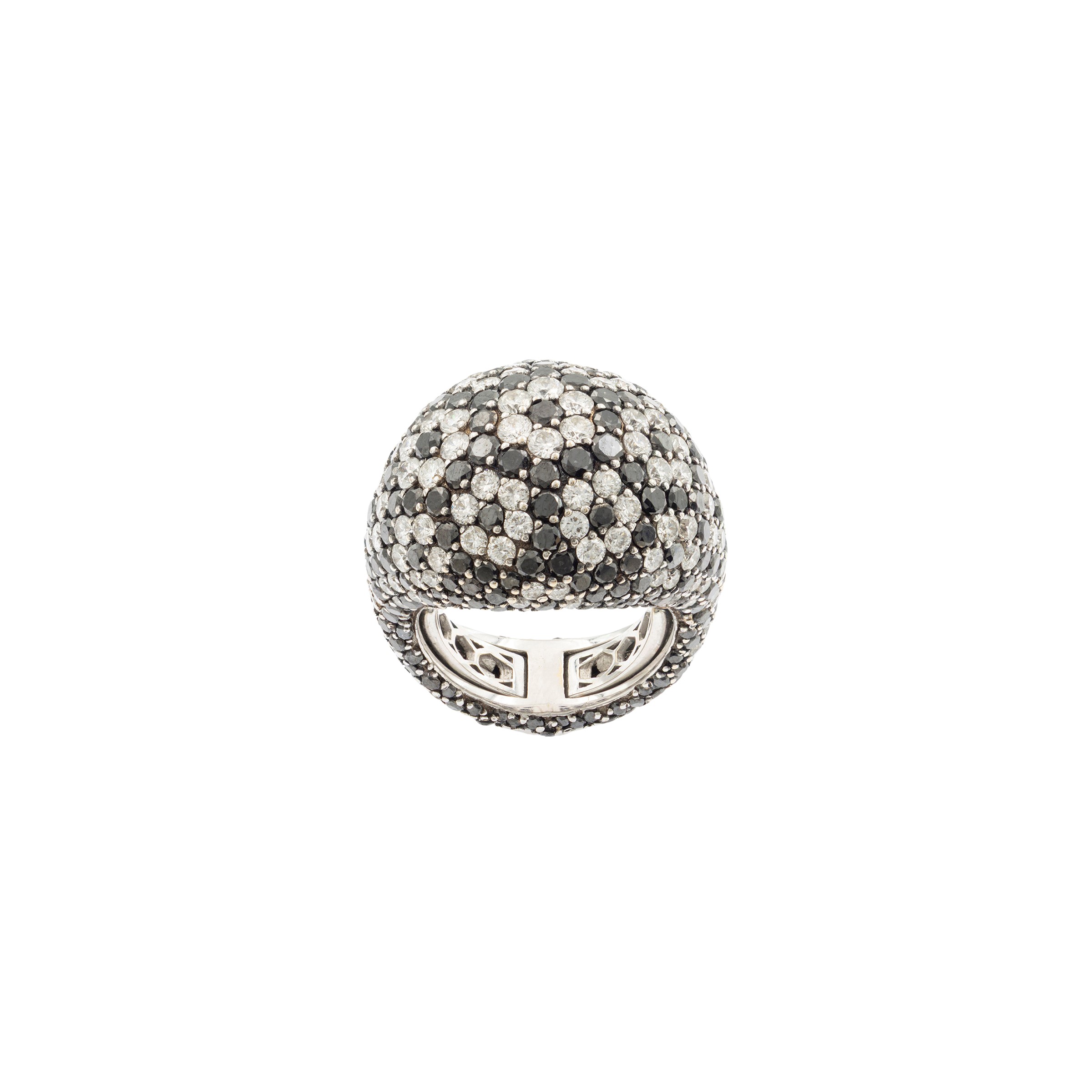 Anello in oro bianco 18kt a motivo floreale e diamanti bicolore