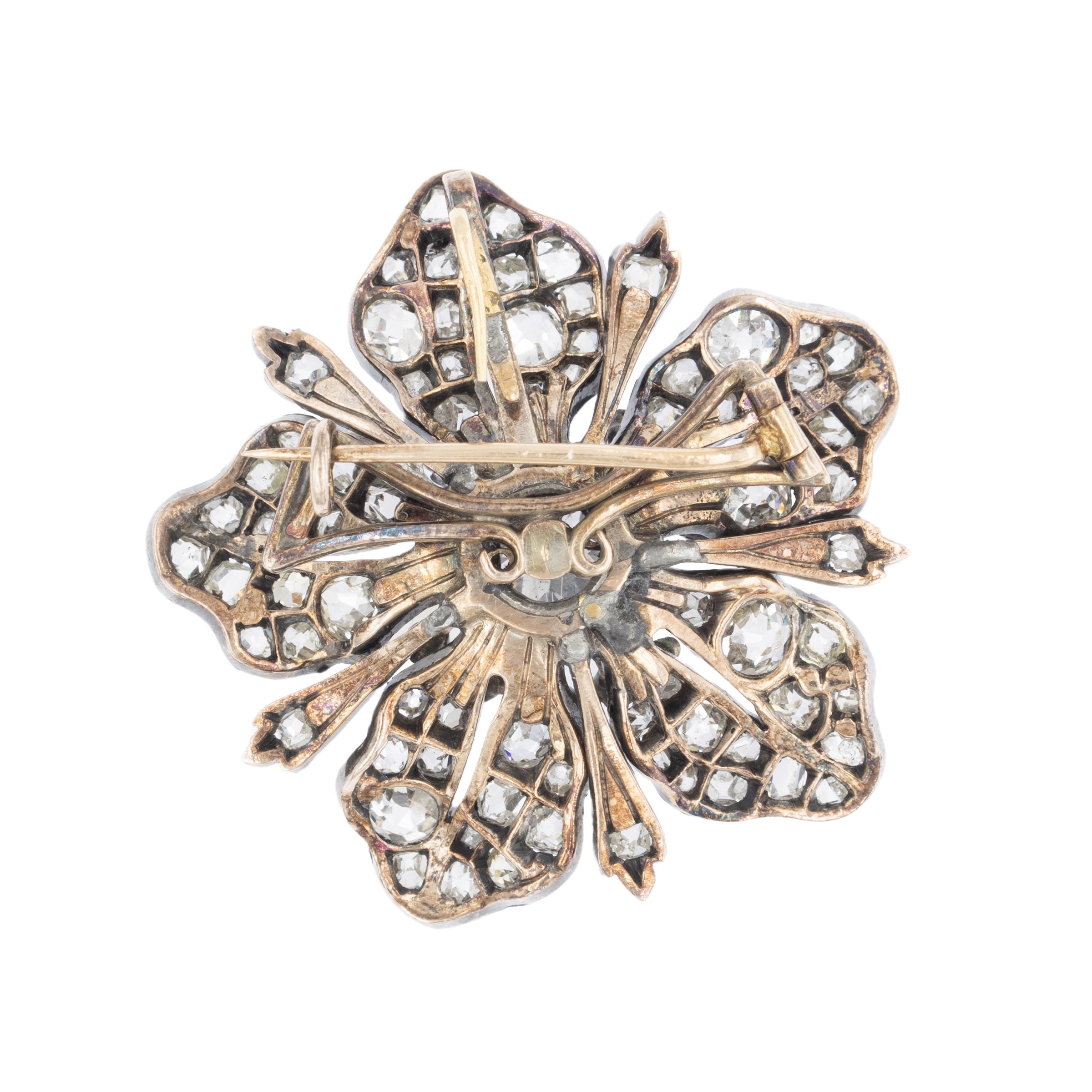 peso 14 gr.un diamante taglio vecchio ct 1,30 circa, rose coroné ct 5 circa e rose di diamante, diametro 3,9 cm.