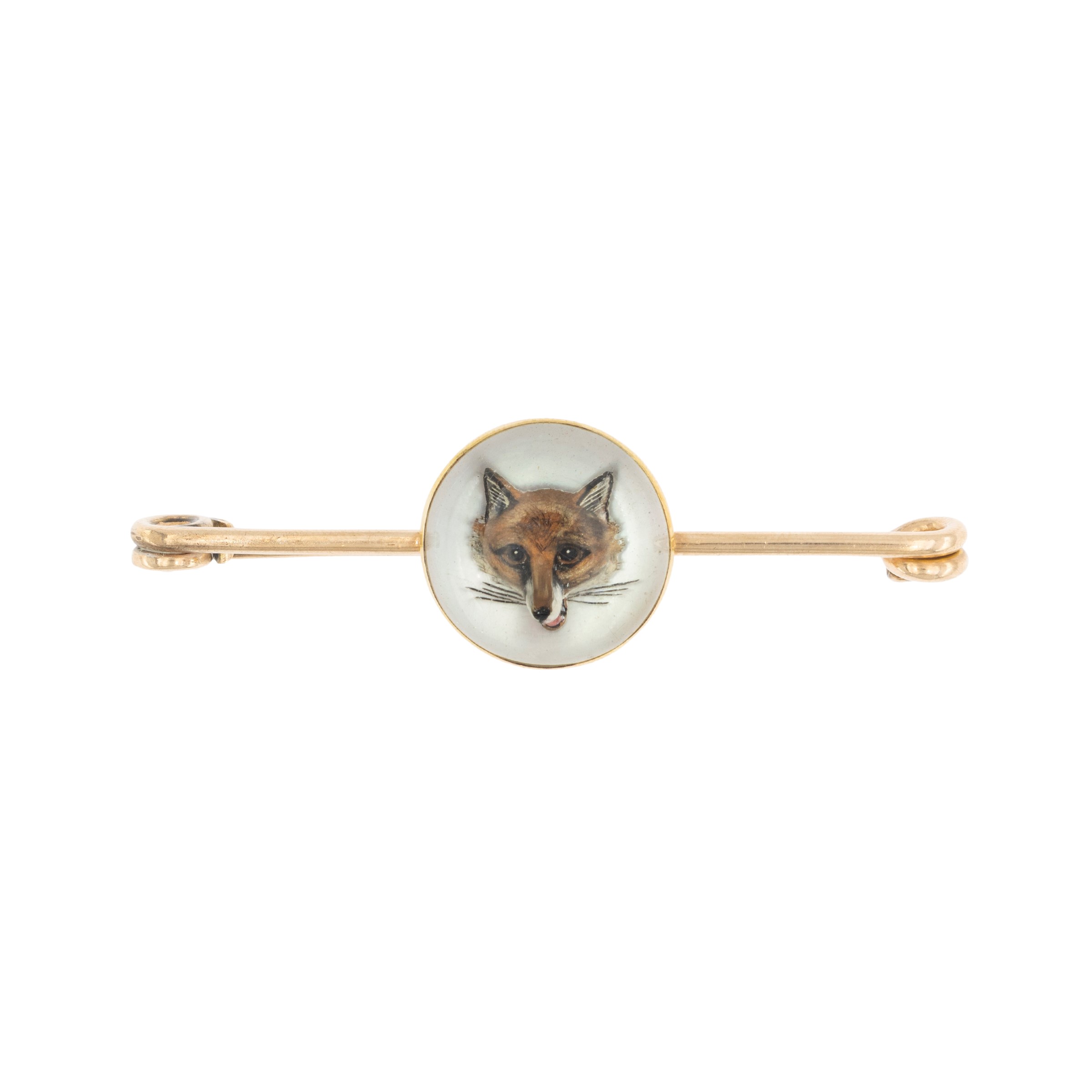 Antica spilla con volpe in oro rosa 18kt e cristallo di rocca