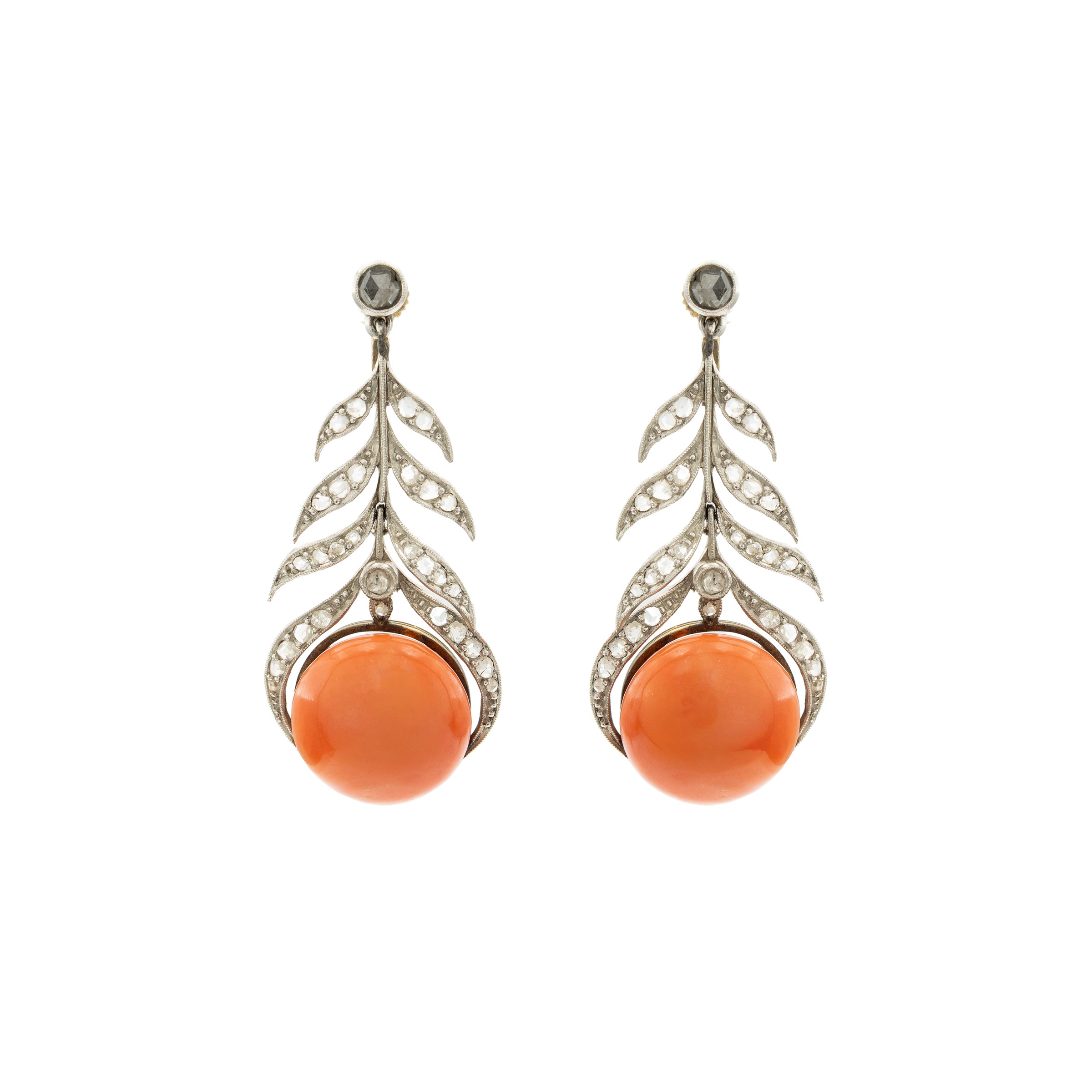 peso 16 gr.rose di diamante e corallo taglio cabochon, lunghezza 4 cm.