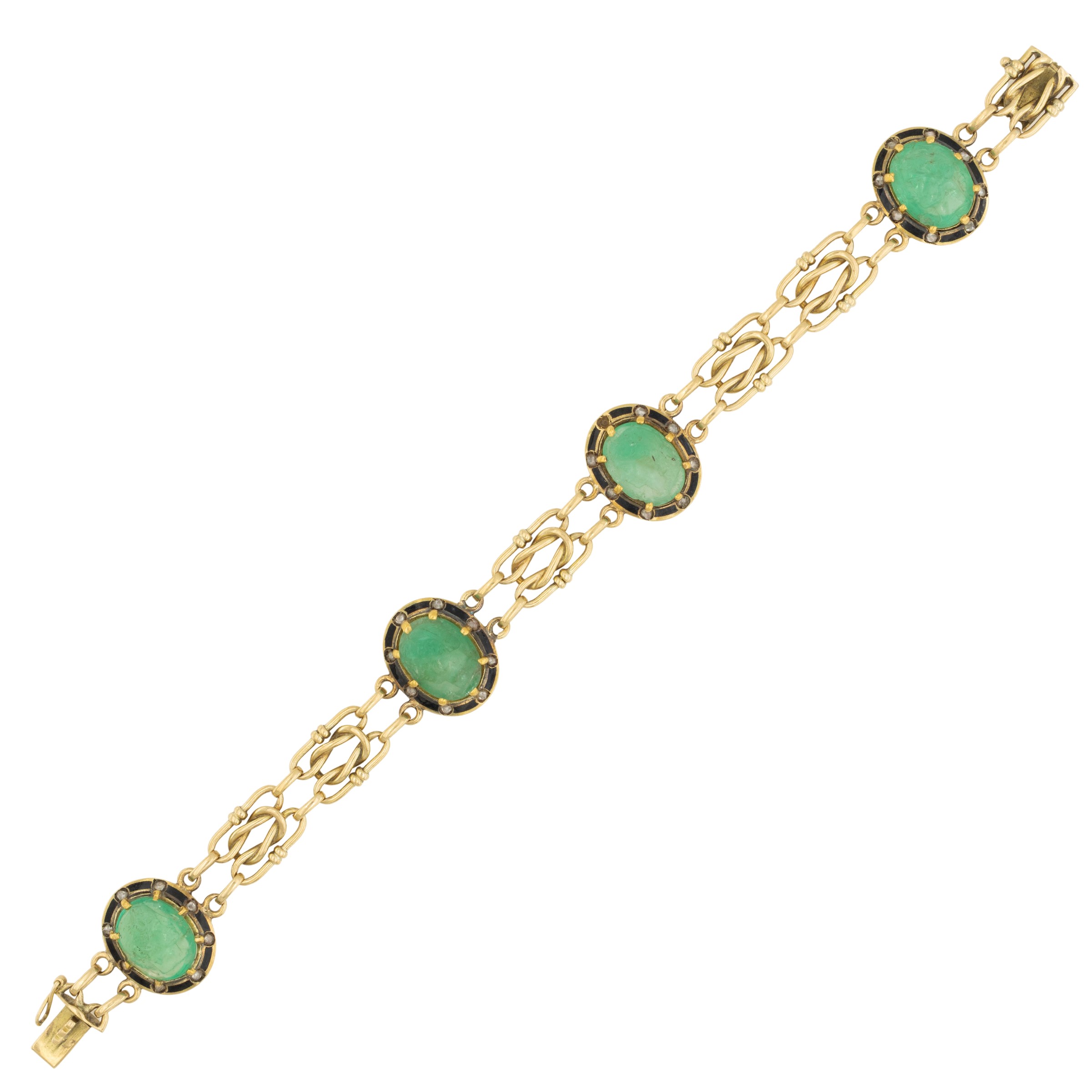 Antico bracciale in oro giallo 18kt, smalto nero e rose di diamante