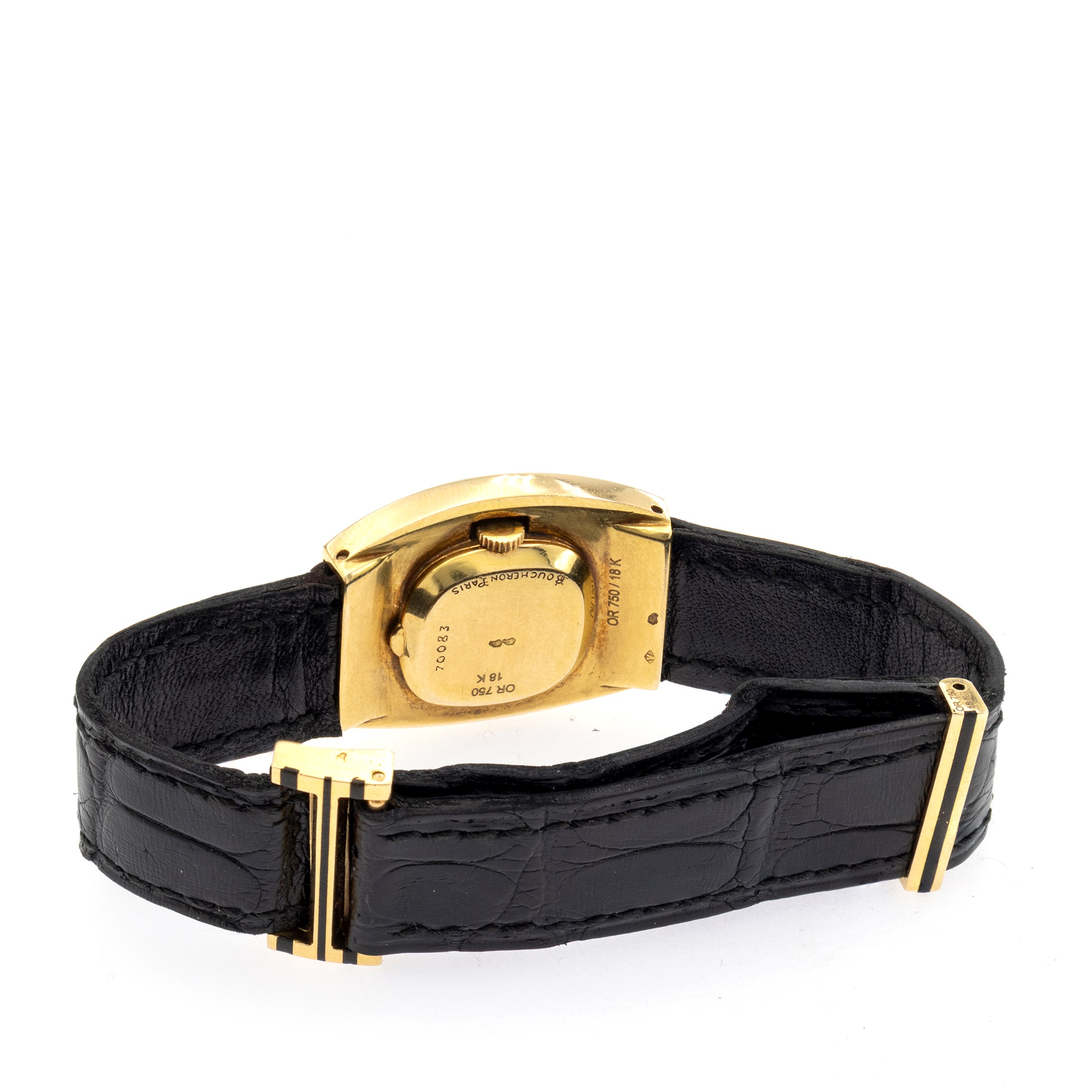 in oro giallo 18kt e onice nero ref. 70083 - 19492 cassa di forma 29x23 mm. quadrante champagne, alcuni segni di usura, movimento meccanico a carica manuale, calibro 6640, cinturino con chiusura regolabile in oro giallo 18kt, cassa, quadrante e movimento firmati