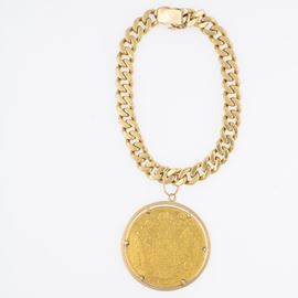 Bracciale a maglia groumette in oro giallo 18kt con moneta pendente