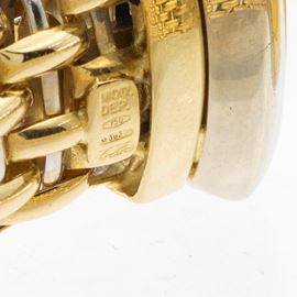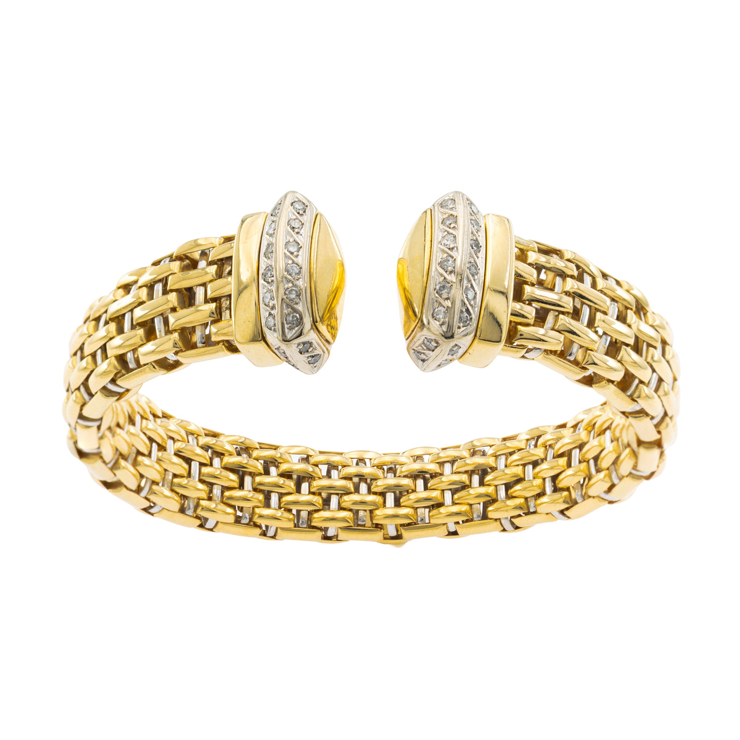 peso 69 gr.terminali con diamanti taglio brillante ct 0,80 circa, molla interna in oro 18kt, diametro 6 cm.