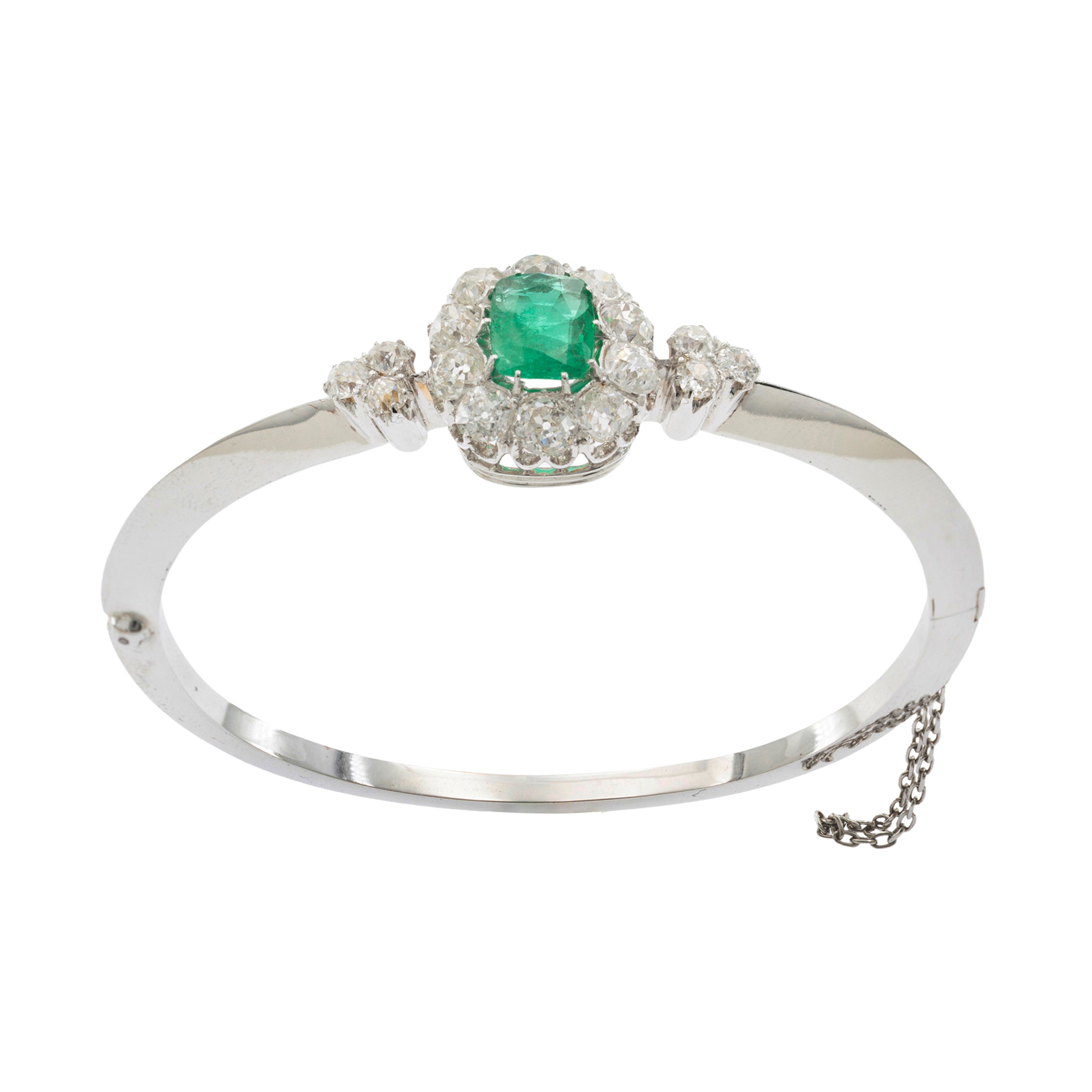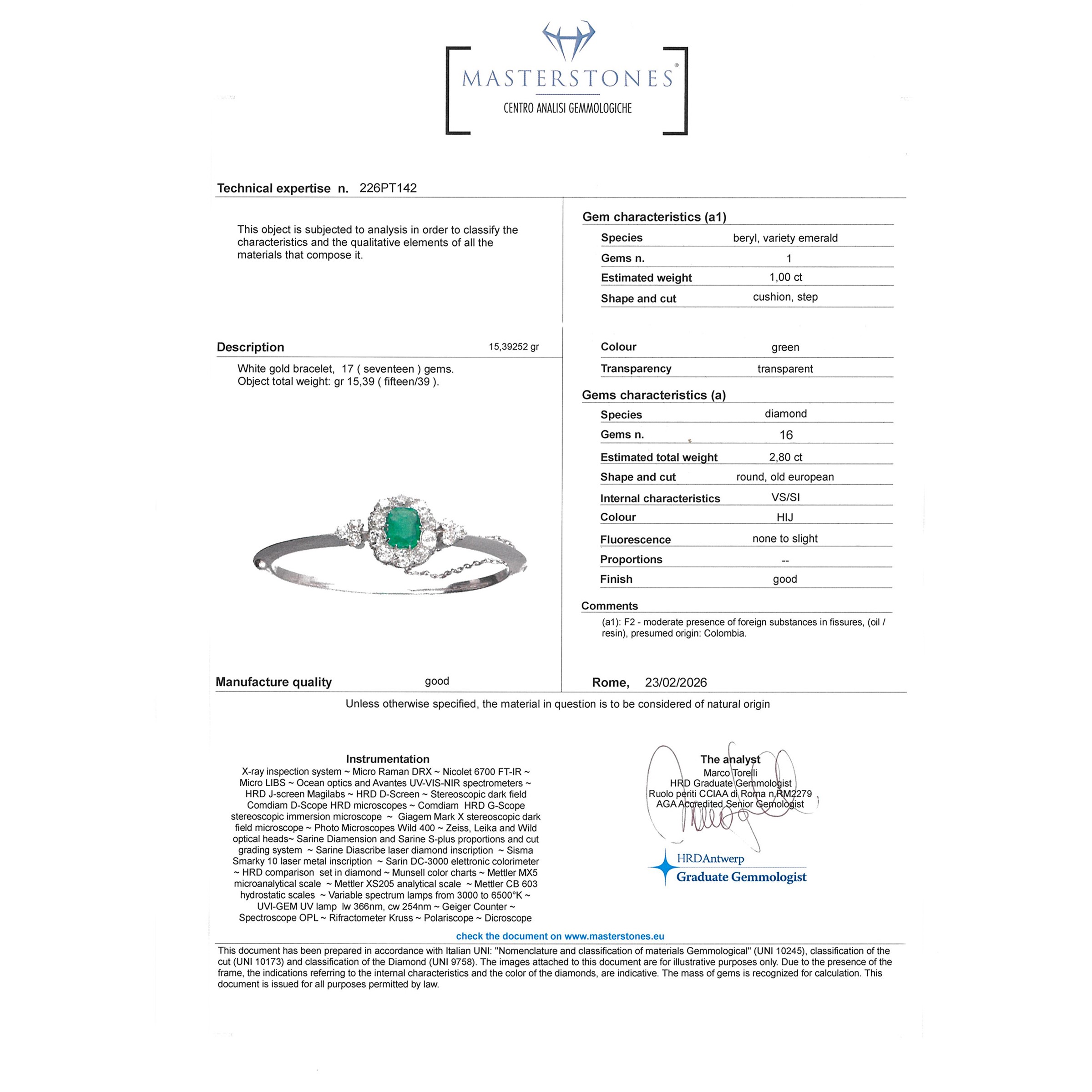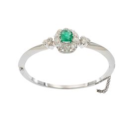 Bracciale a manetta in oro bianco 18kt smeraldo colombiano naturale e diamanti