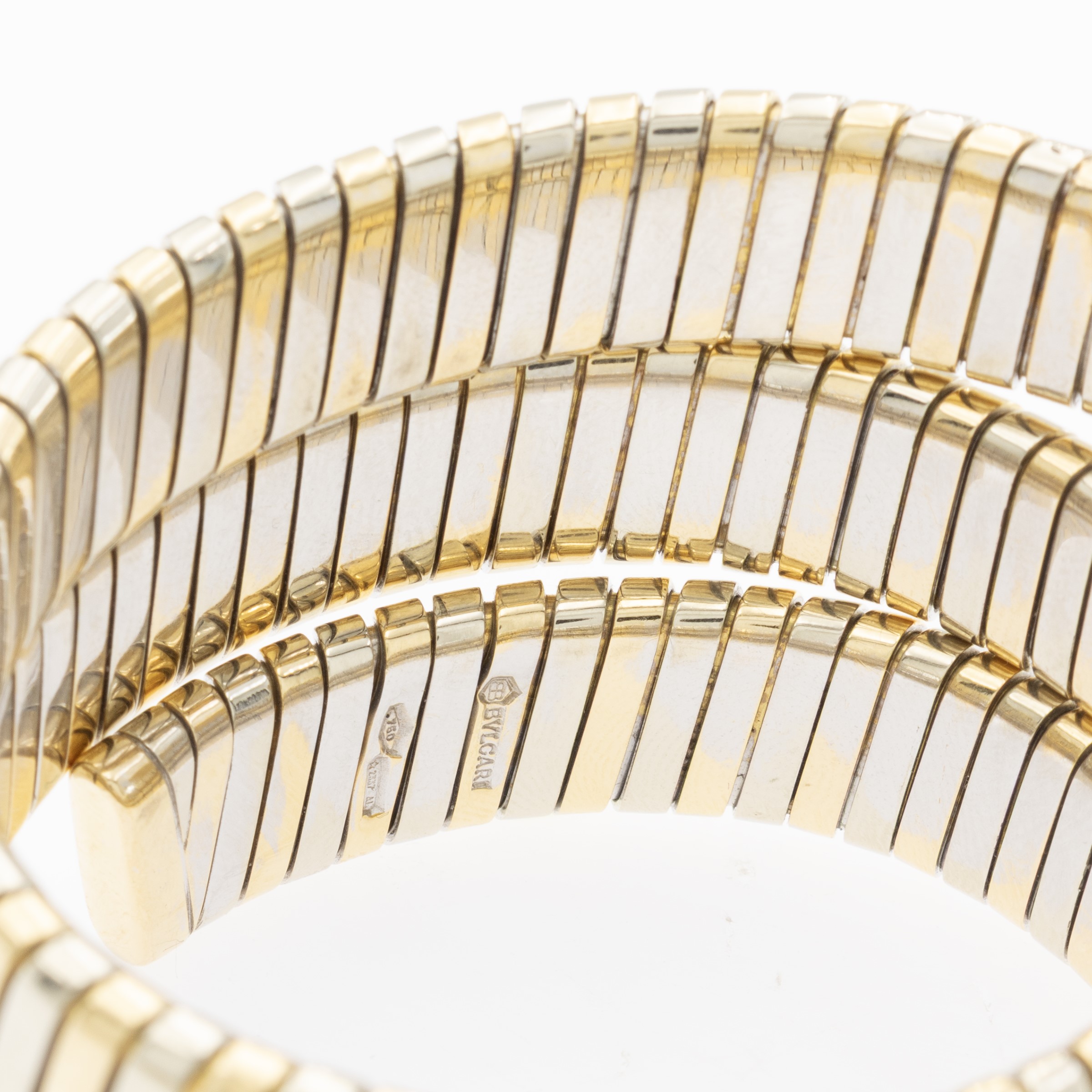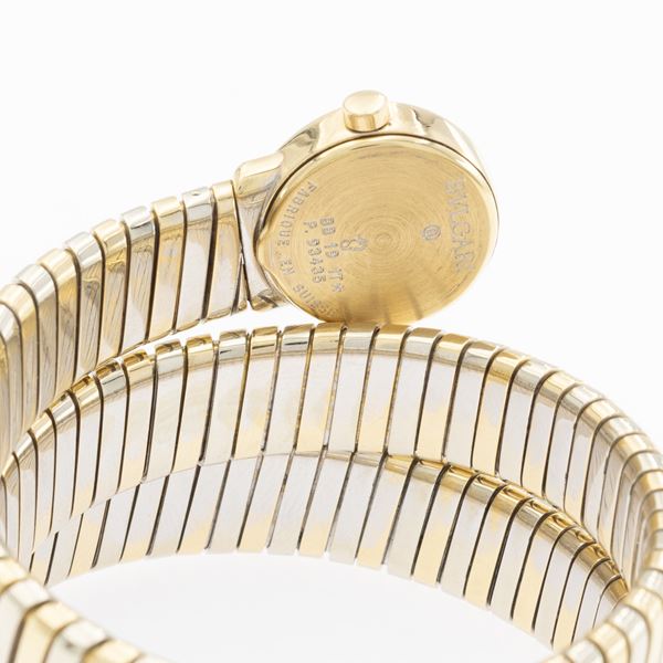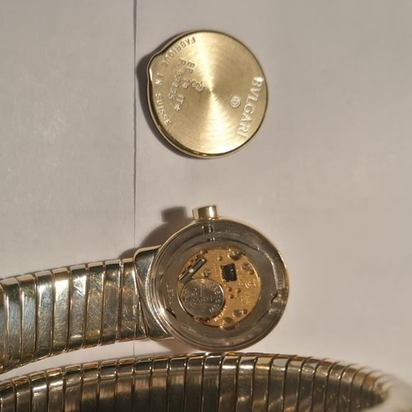 peso 139 gr.in oro a tre colori 18kt, ref. BB191T - P.93435, cassa 19 mm. quadrante nero con indici, movimento al quarzo, calibro eta E01001, bracciale tubogas a tre spirali, cassa, quadrante e movimento firmati, completo di scatola e documenti.