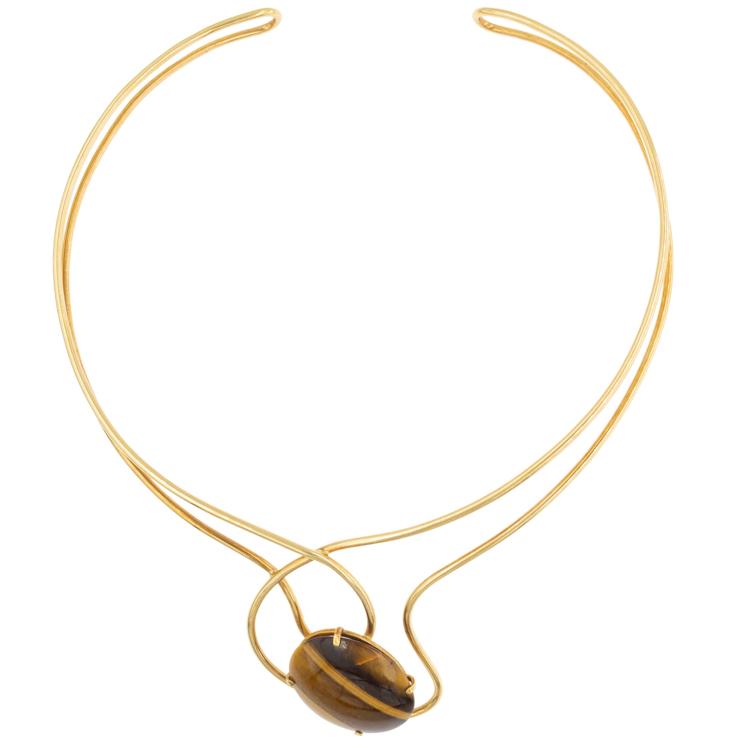 Choker in oro giallo 18kt centrato da occhio di tigre