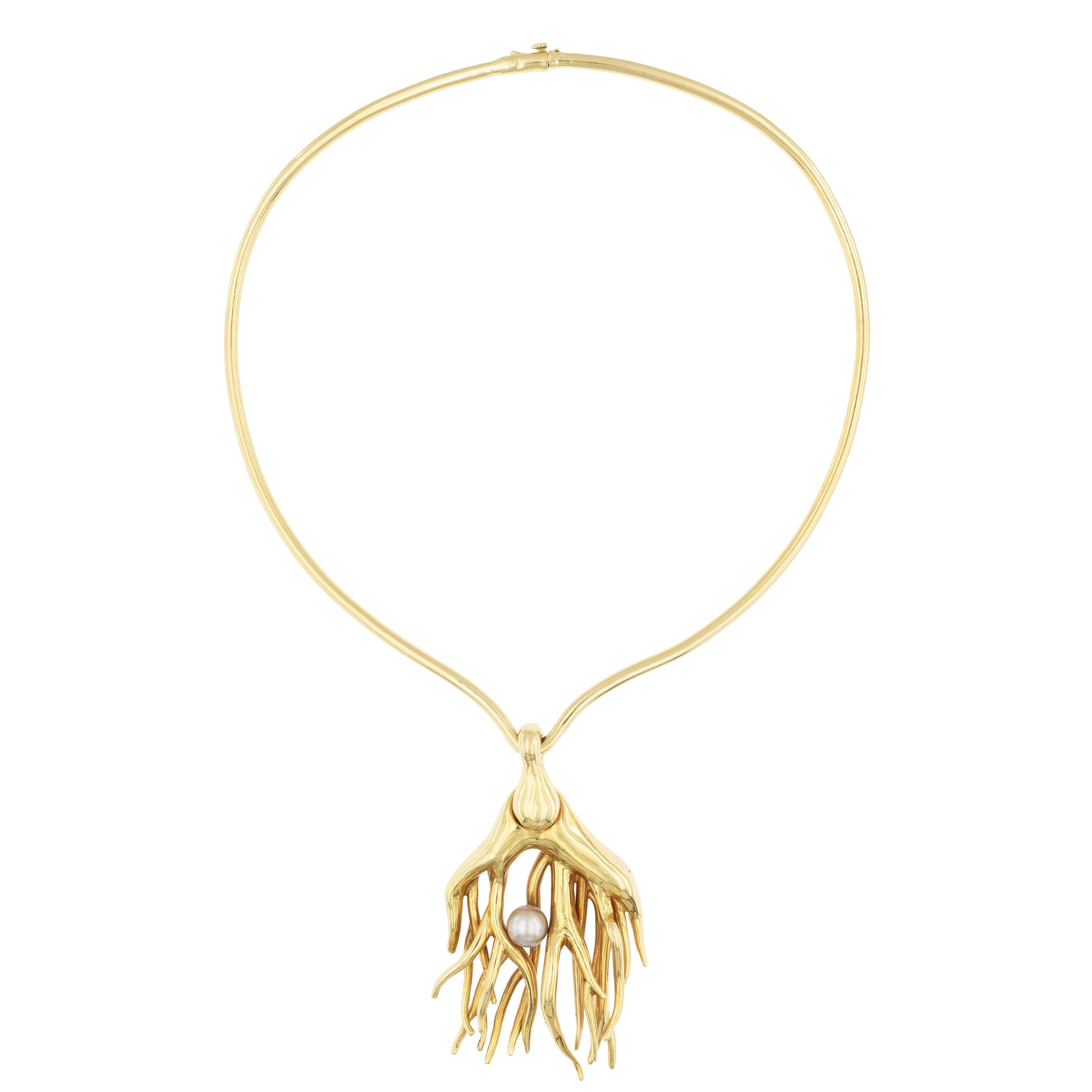 peso 62 gr.in oro giallo 18kt e perla grigia, 8 mm. circa, lunghezza 41 cm.