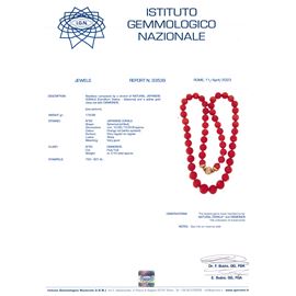 peso 177 gr.tagliato a sfere da 12 a 15,2 mm. circa, chiusura a boule in oro giallo 18kt e diamanti taglio huit-huit, ct 0,10, lunghezza 75 cm. completo di certificato gemmologico