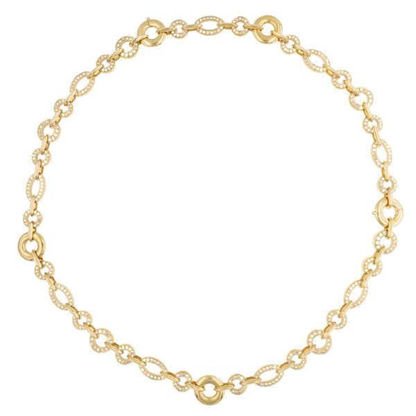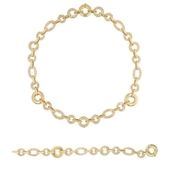 Collana e bracciale in oro giallo 18kt e diamanti
