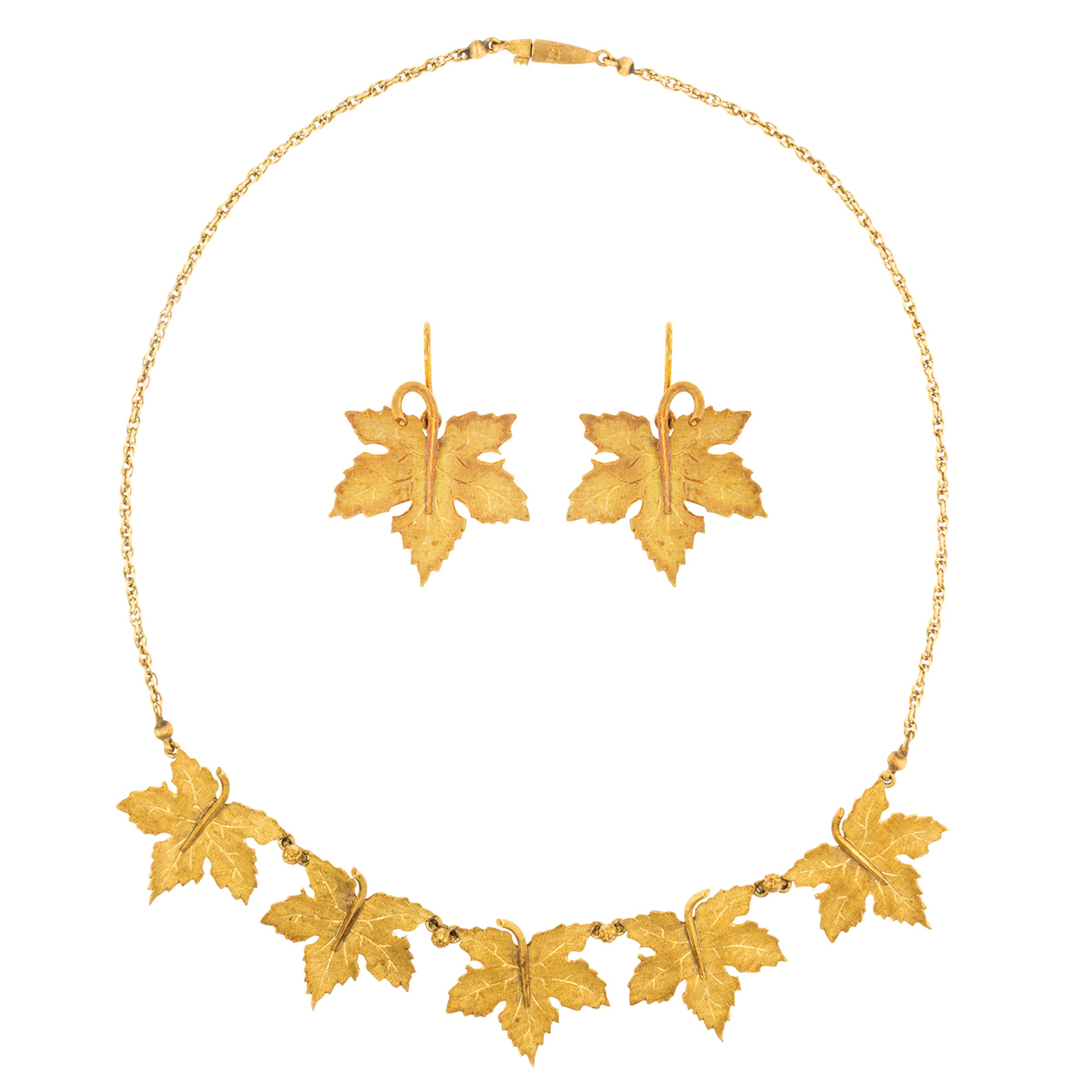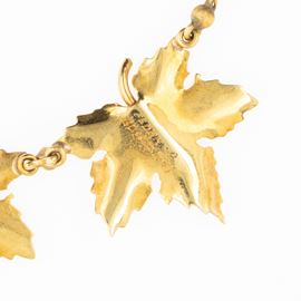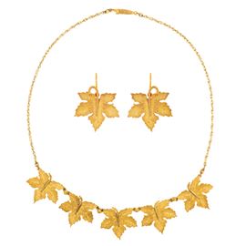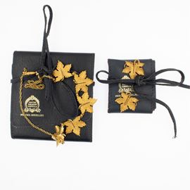composta da collana e orecchini pendenti, lunghezze 39 cm. - 2,4 cm. completa di custodie in pelle