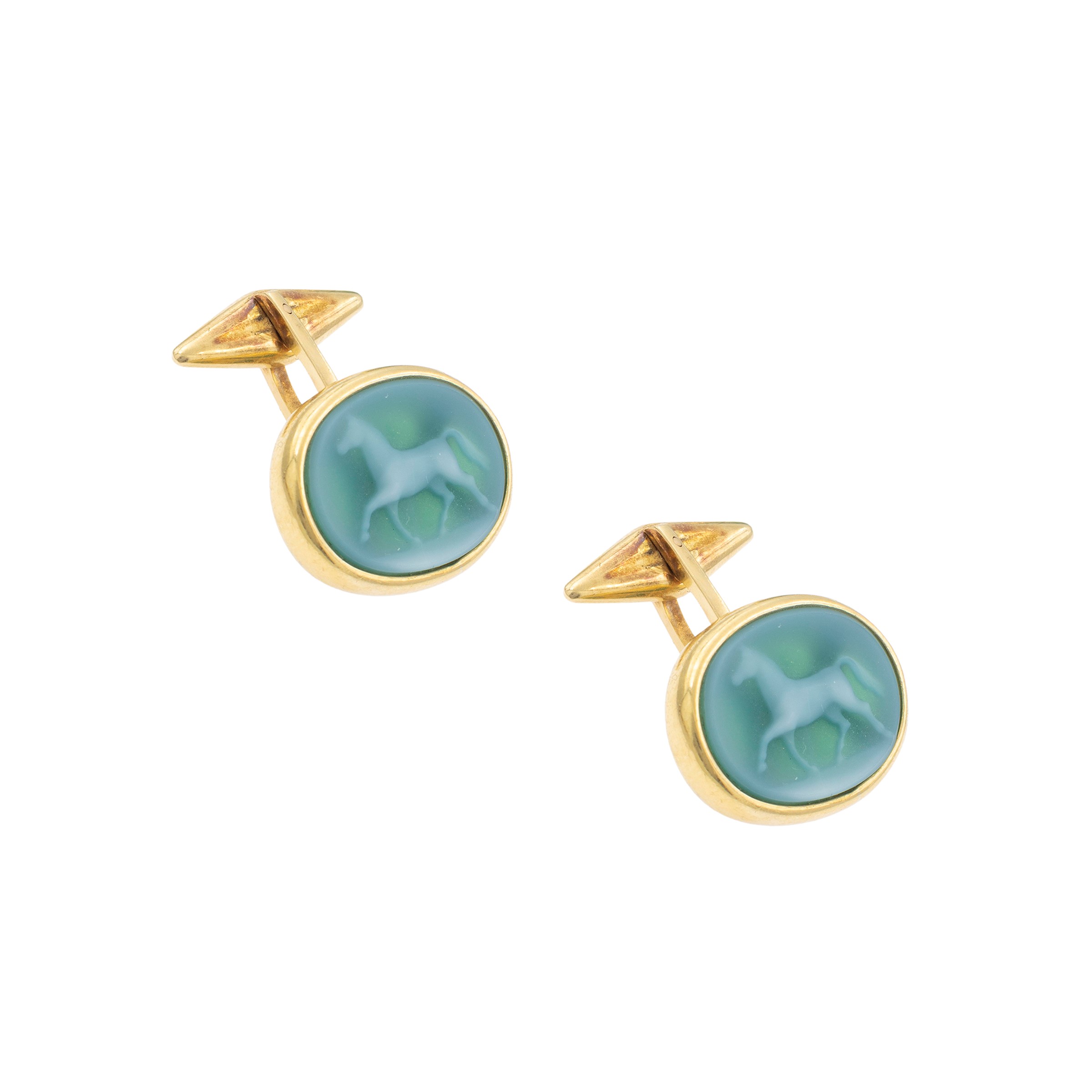Gemelli in oro giallo 18kt e cammeo scolpito su agata