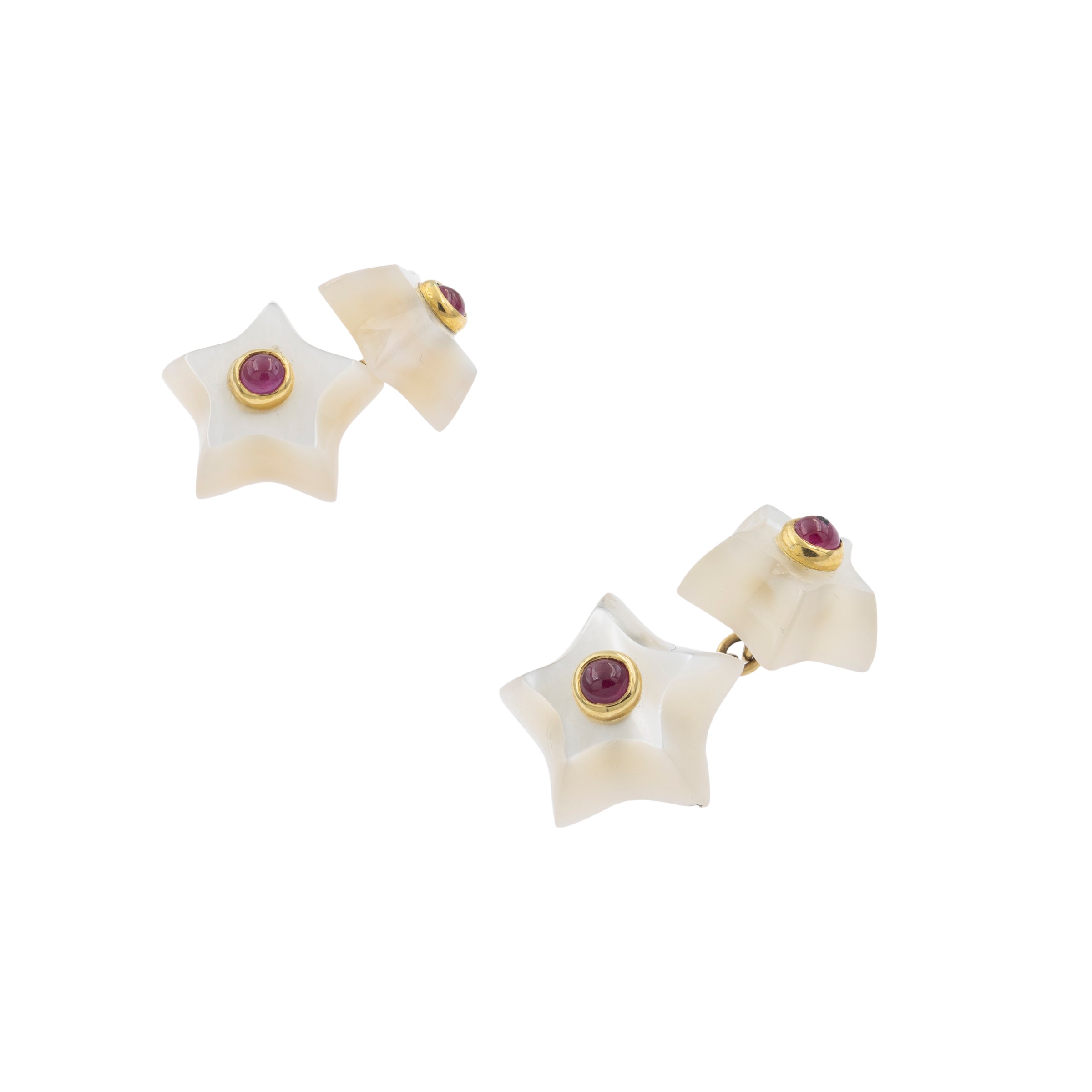 Gemelli stella in oro giallo 18kt madreperla e rubini