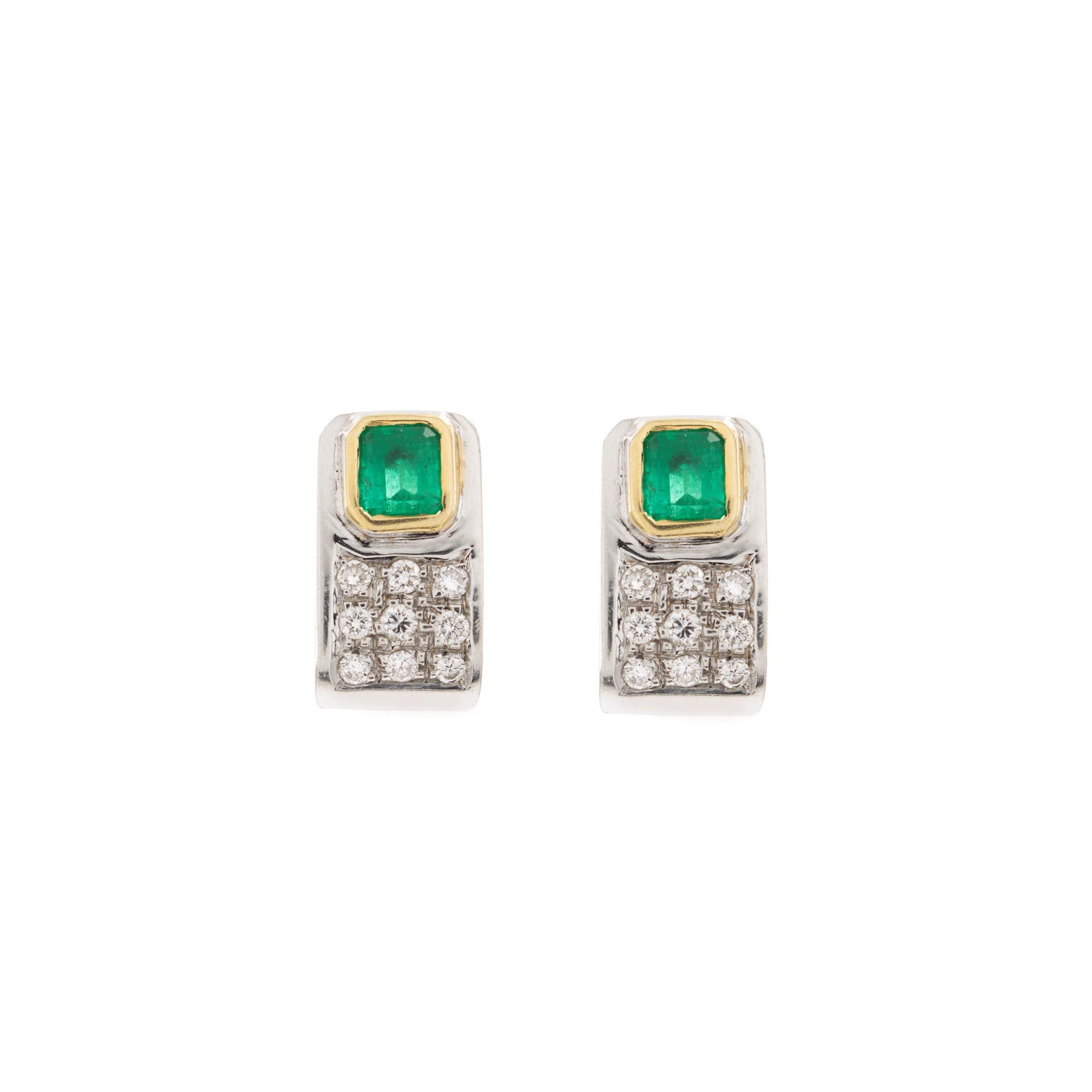 peso 7 gr.smeraldi naturali ct 1 circa, diamanti taglio brillante ct 0,40 circa, dimensioni 1,5x0,9 cm.