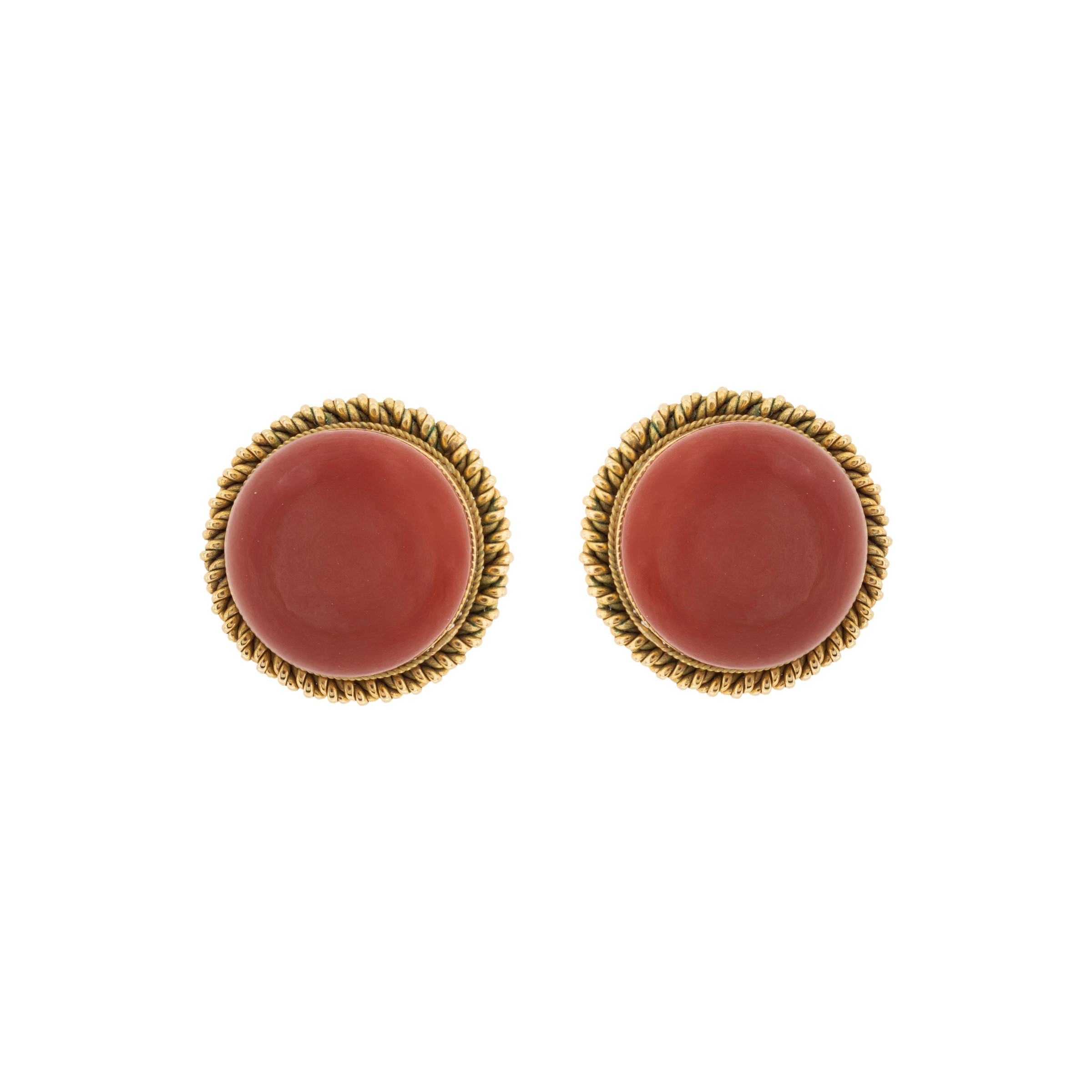 Orecchini a lobo in oro giallo 18kt e corallo mediterraneo