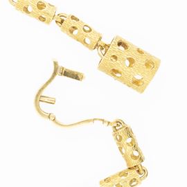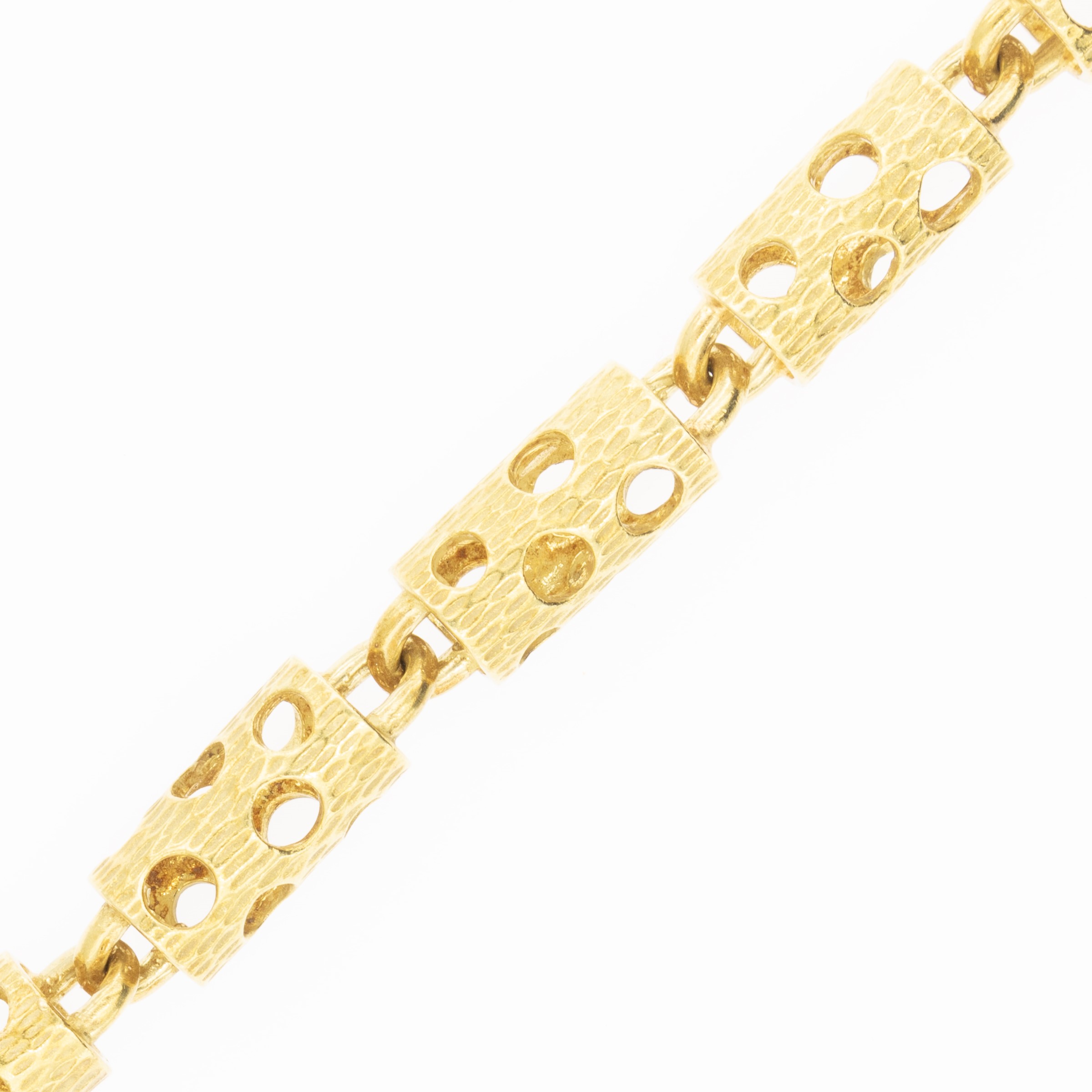 peso 125 gr.maglie cilindriche traforate, chiusura a scatto, lunghezza 75 cm. regolabile a più altezze