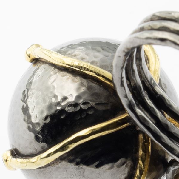 peso 16 gr.in oro giallo 18kt, argento e diamanti taglio brillante, misura 14