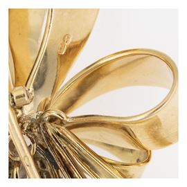Spilla fiocco in oro giallo e bianco 18kt e diamanti