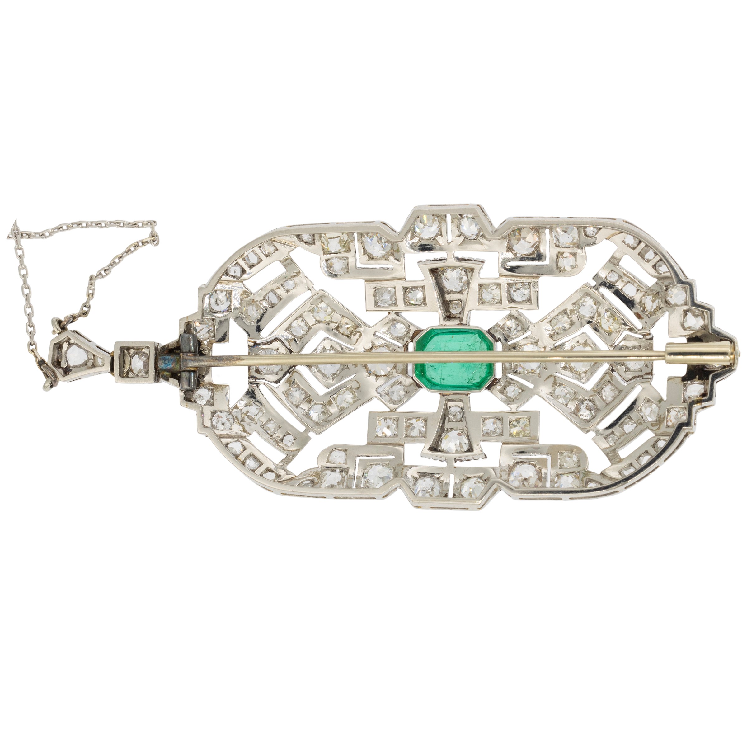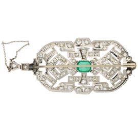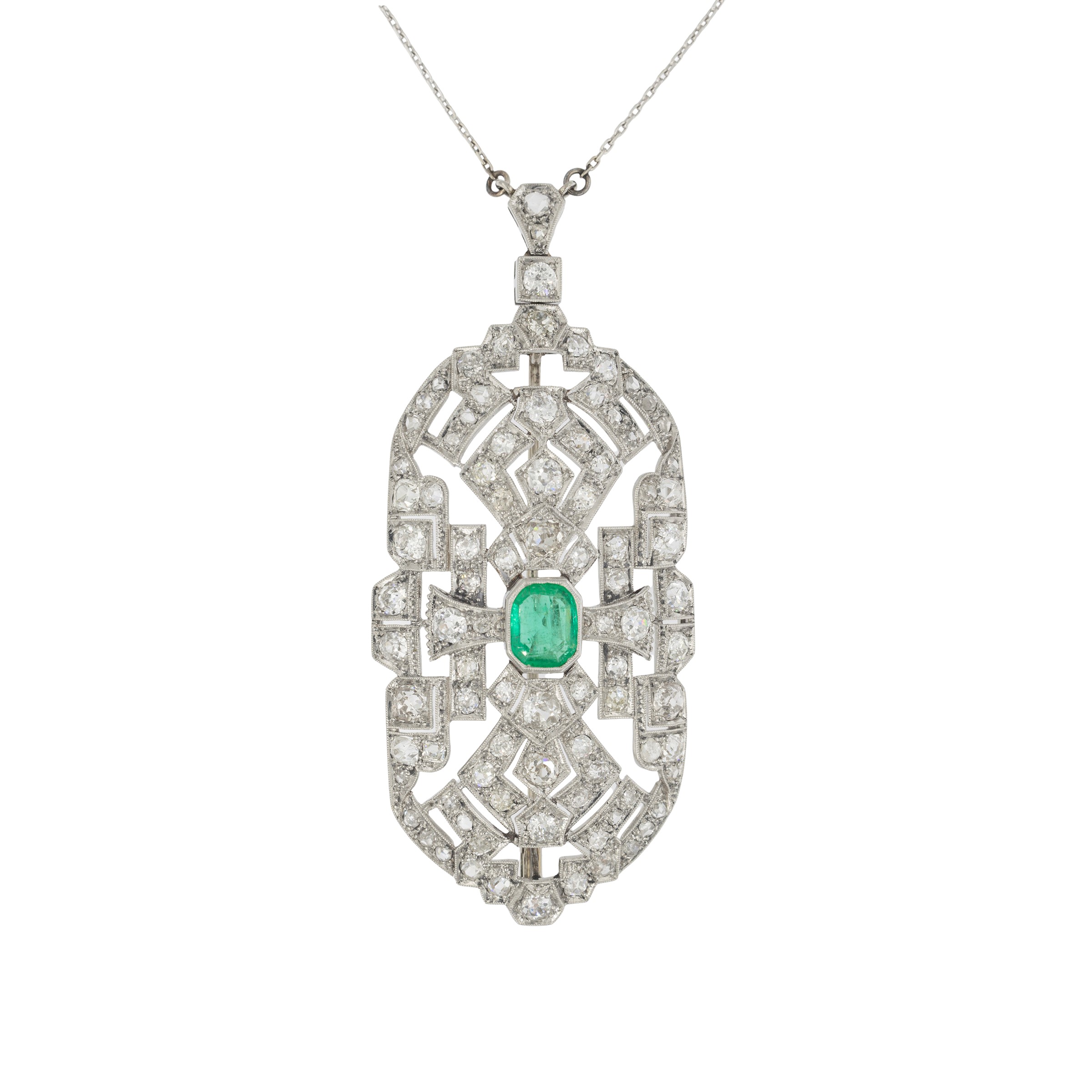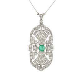 Spilla pendente Decò in platino con smeraldo e diamanti