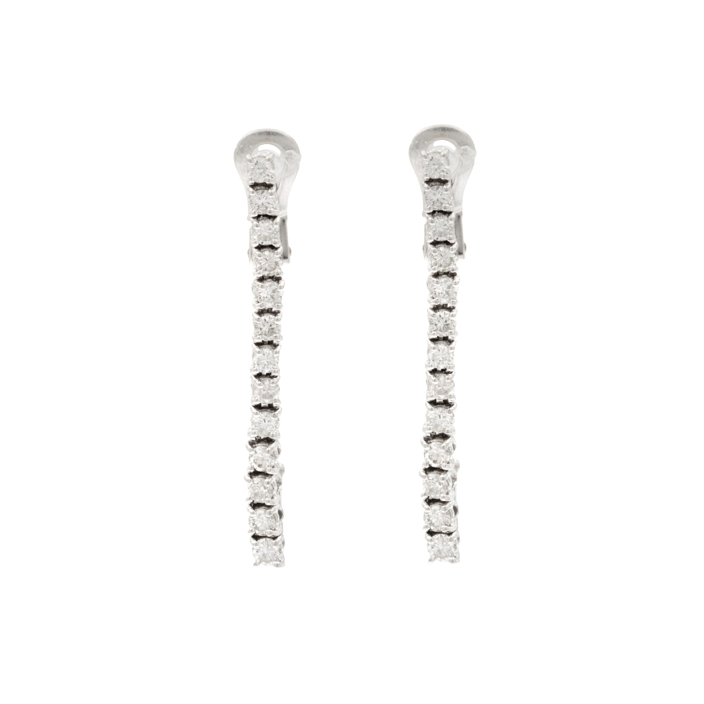Orecchini tennis pendenti in oro bianco 18kt e diamanti