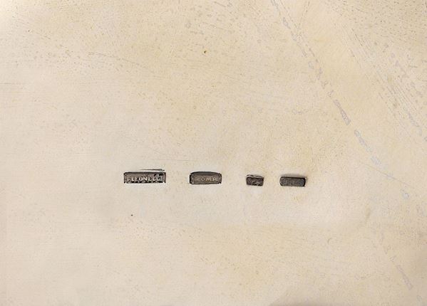 octagonal body, plain surface, goldsmith silversmith F. Leonelli, territorial and silversmith marks under the base, cm 27x27, peso 6300 gr.