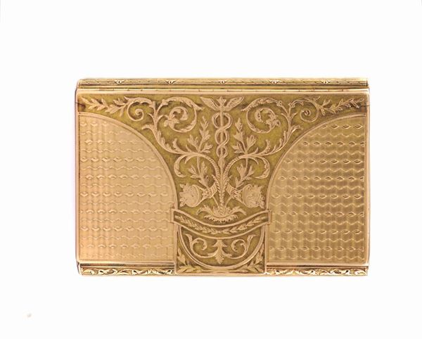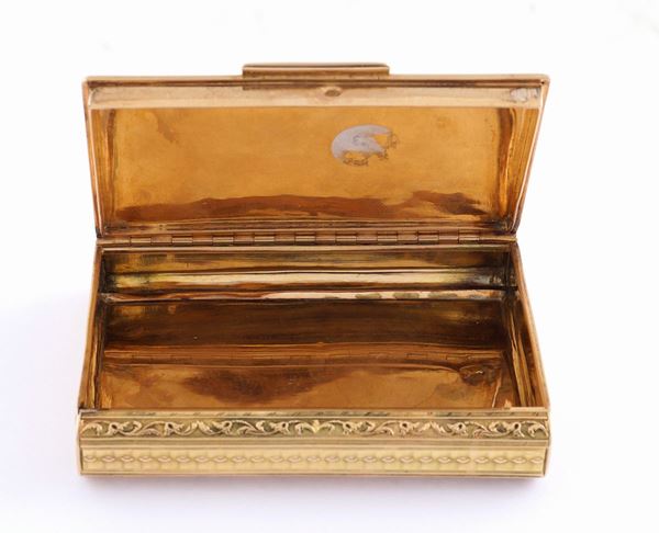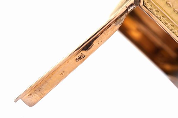 decorated with horns of plenty, acanthus shoots and a caduceus, French import stamps (1819-1838), weight 71 gr., 1,5x5,5x8 cm.