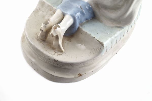 "Der Froschkoenig (the frog prince)", a polychromatic ceramic group, signed on the backside, wears, minor defects, h. 40 cm.