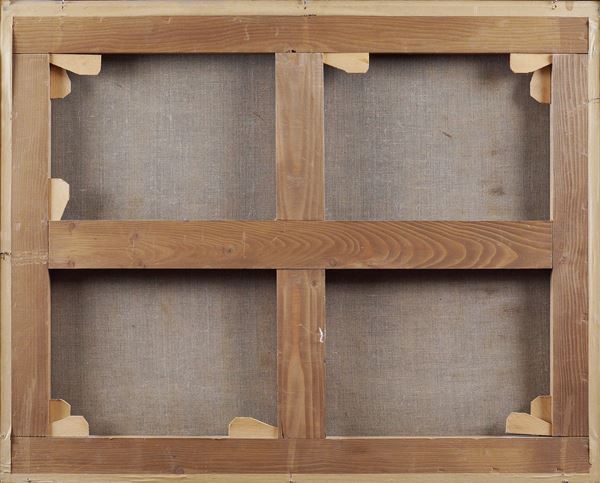 "Holy family with parrot", oil on canvas, framed, 67x83,5 cm.