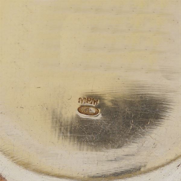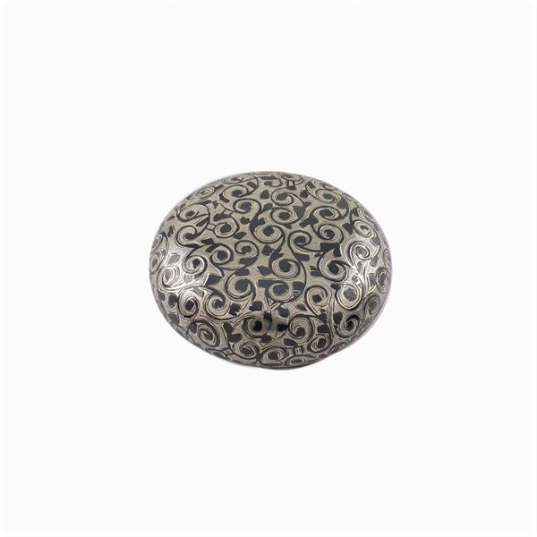 carved surface decorated with scroll patterns, lid with a Cyrillic inscription, marks inside, 2x6 cm.m, peso 50 gr.