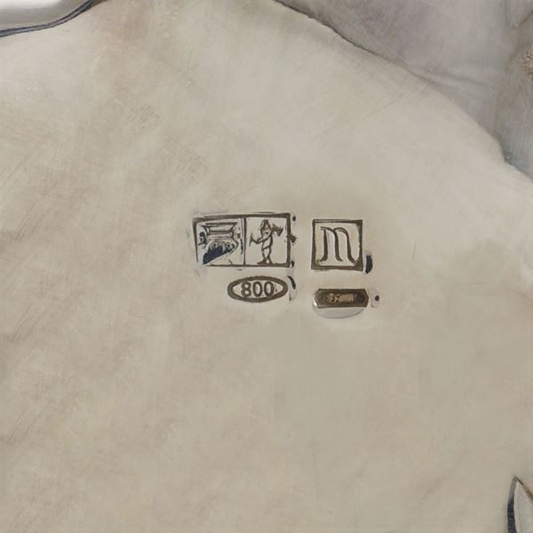 finely chased with vegetal and scroll patterns, ebony handle, silversmith Enrico Messulam - Milano, h. 28 cm.