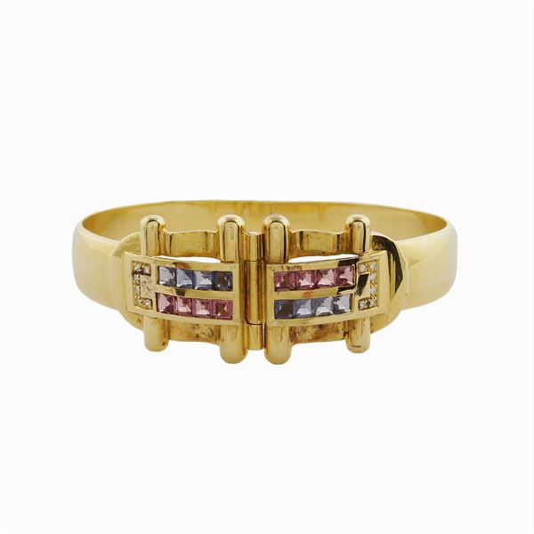 with carré cut tormaline in different colors, huit-huit cut diamonds, d. cm. 6e, peso 41,7 gr.