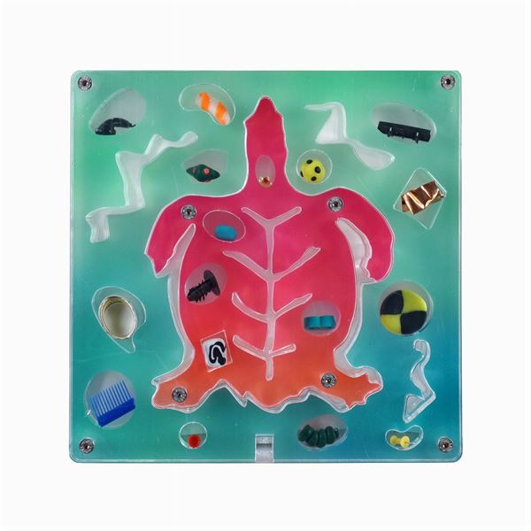 "Turtle", sculpture in plexiglass, resins, objects, 2011
