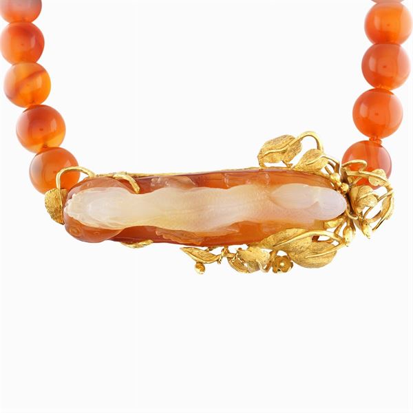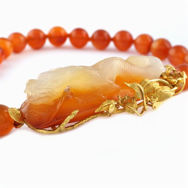 composed by a round necklace and earrings, dragon shaped central closure, necklace length 42 cm.