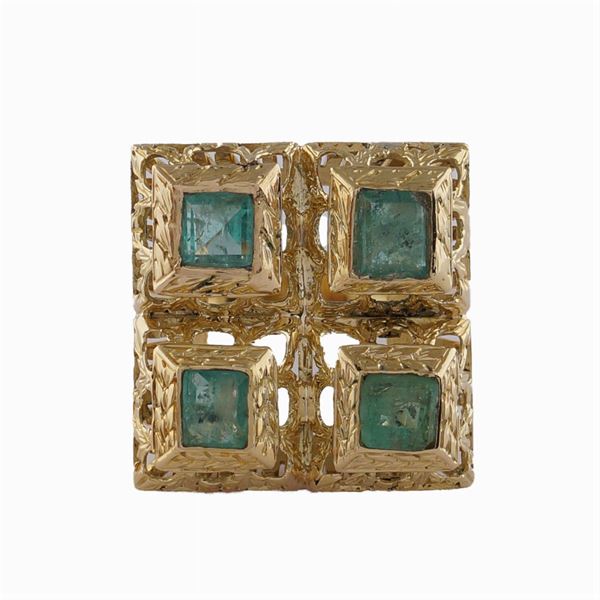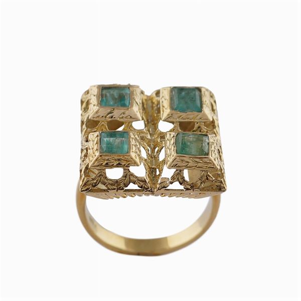 with four carrè cut emeralds approx ct 1, size 13, peso 7,2 gr.