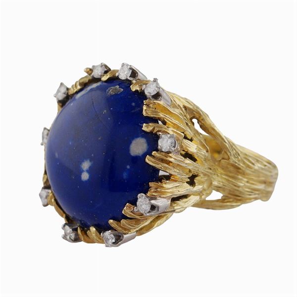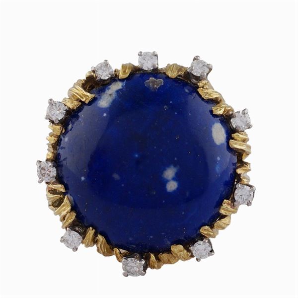 centered by lapis lazuli and brilliant cut diamonds approx. 0.50 carats, size 20, peso 26,1 gr.