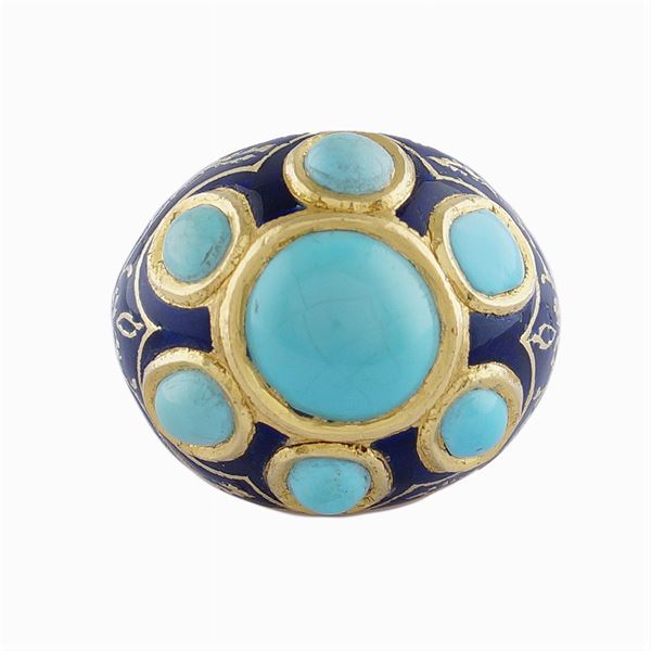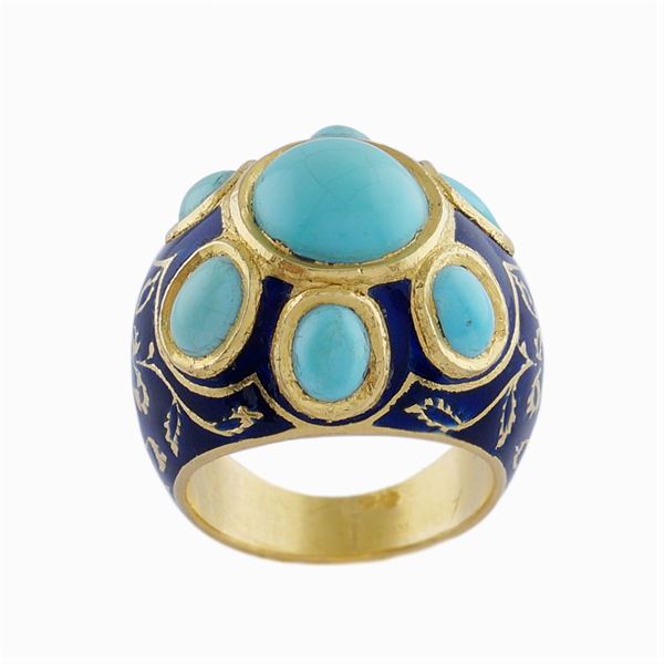blue enamel decorated with floral patterns, size 17, peso 24,4 gr.