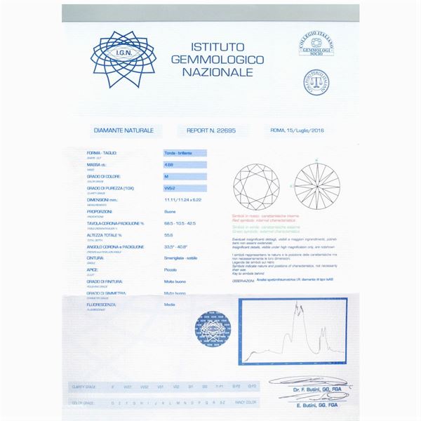 color M - VVS purity, medium fluorescence. Complete with gemmological certificate I.GN.N.22695
