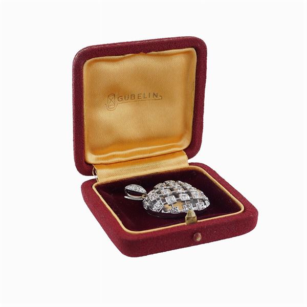 and platinum, with diamond roses, approx ct 1,30, size 4x2,6 cm., peso 11,8 gr.